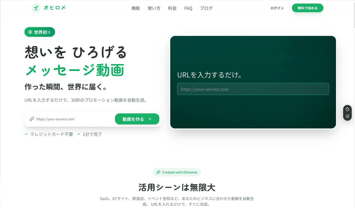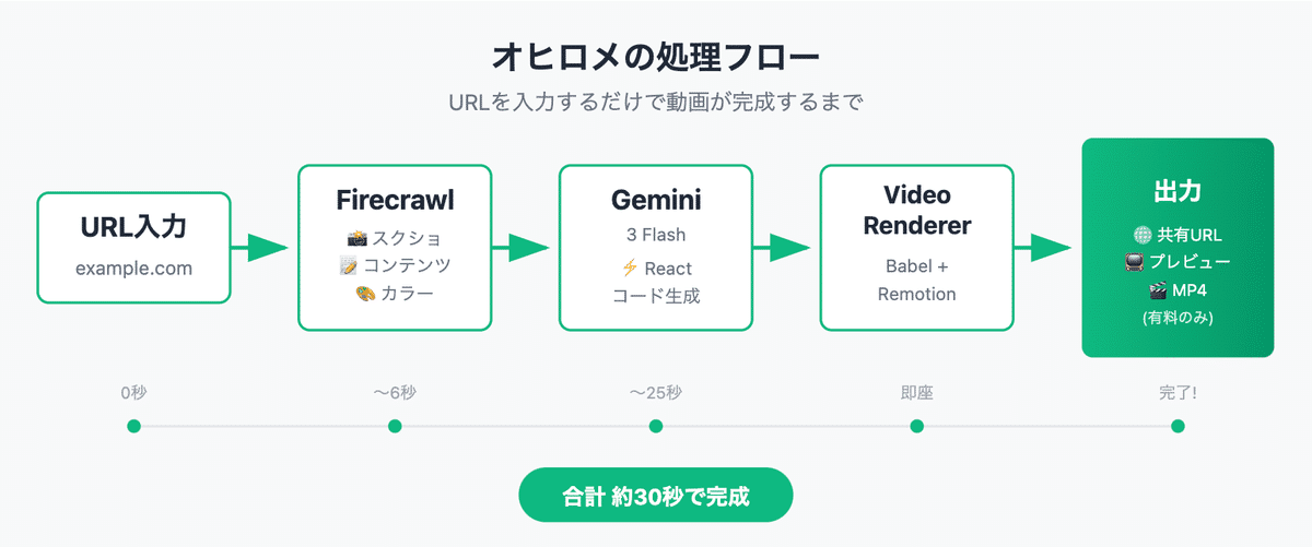 今回、オヒロメ というWebサービスを作りました。WebサイトのURLを入力するだけで、30秒のプロモーション動画を自動生成するSaaSです。