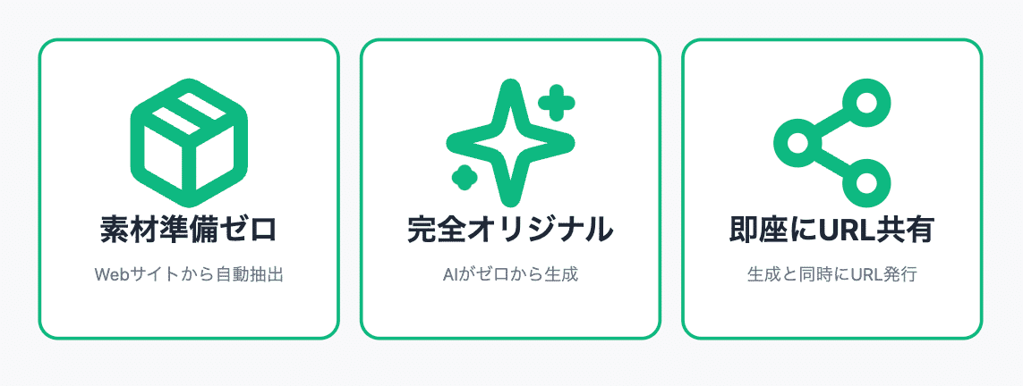 即座にURL共有 - 生成と同時にURLが発行され、すぐシェア可能