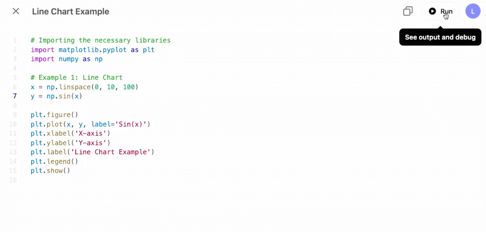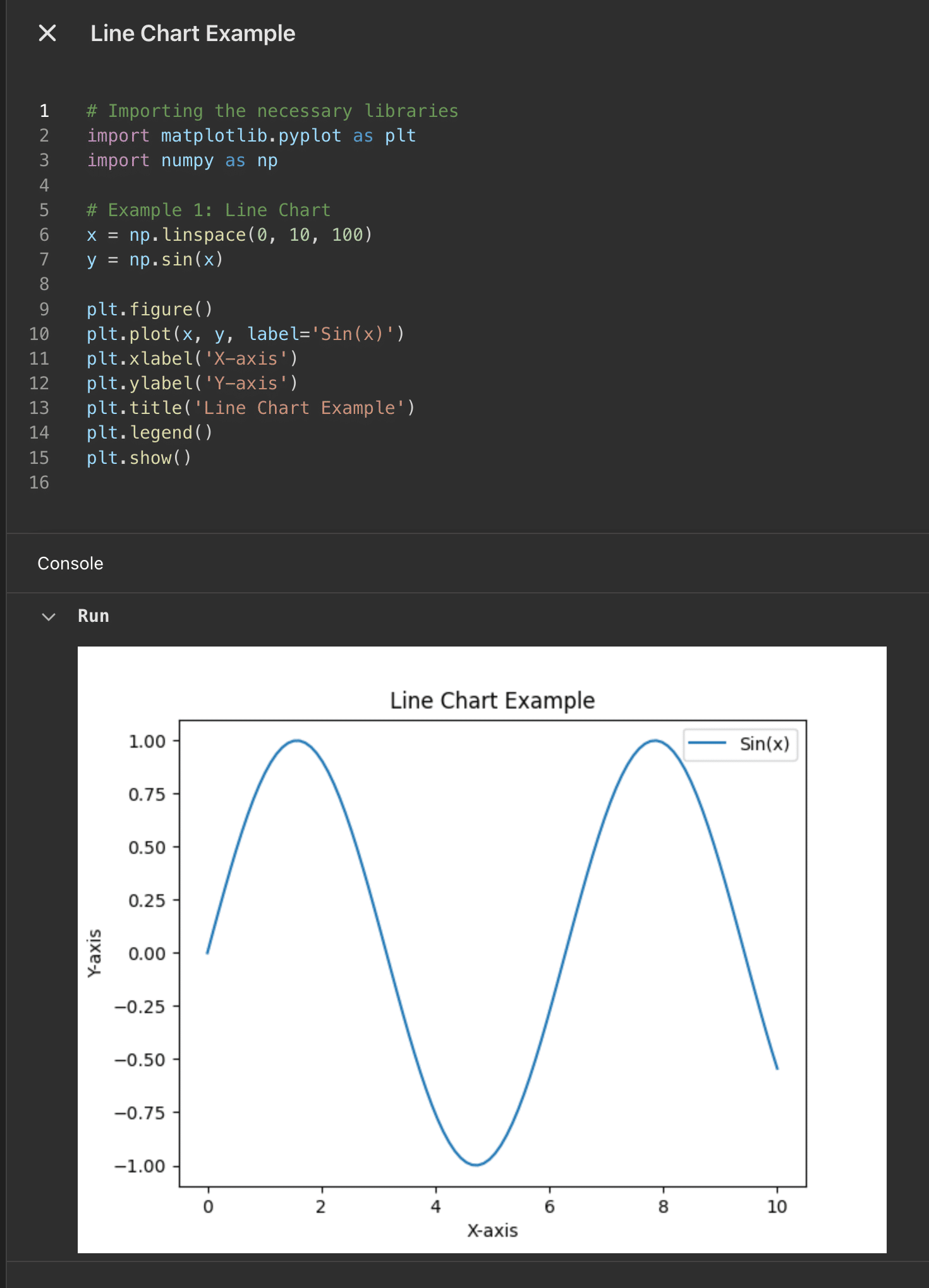 Canvas上でコードを入力し、右上(またはCanvas上部)にある「Run」ボタンをクリックするとPythonコードが即時に実行され、結果がコンソール領域に表示されます。