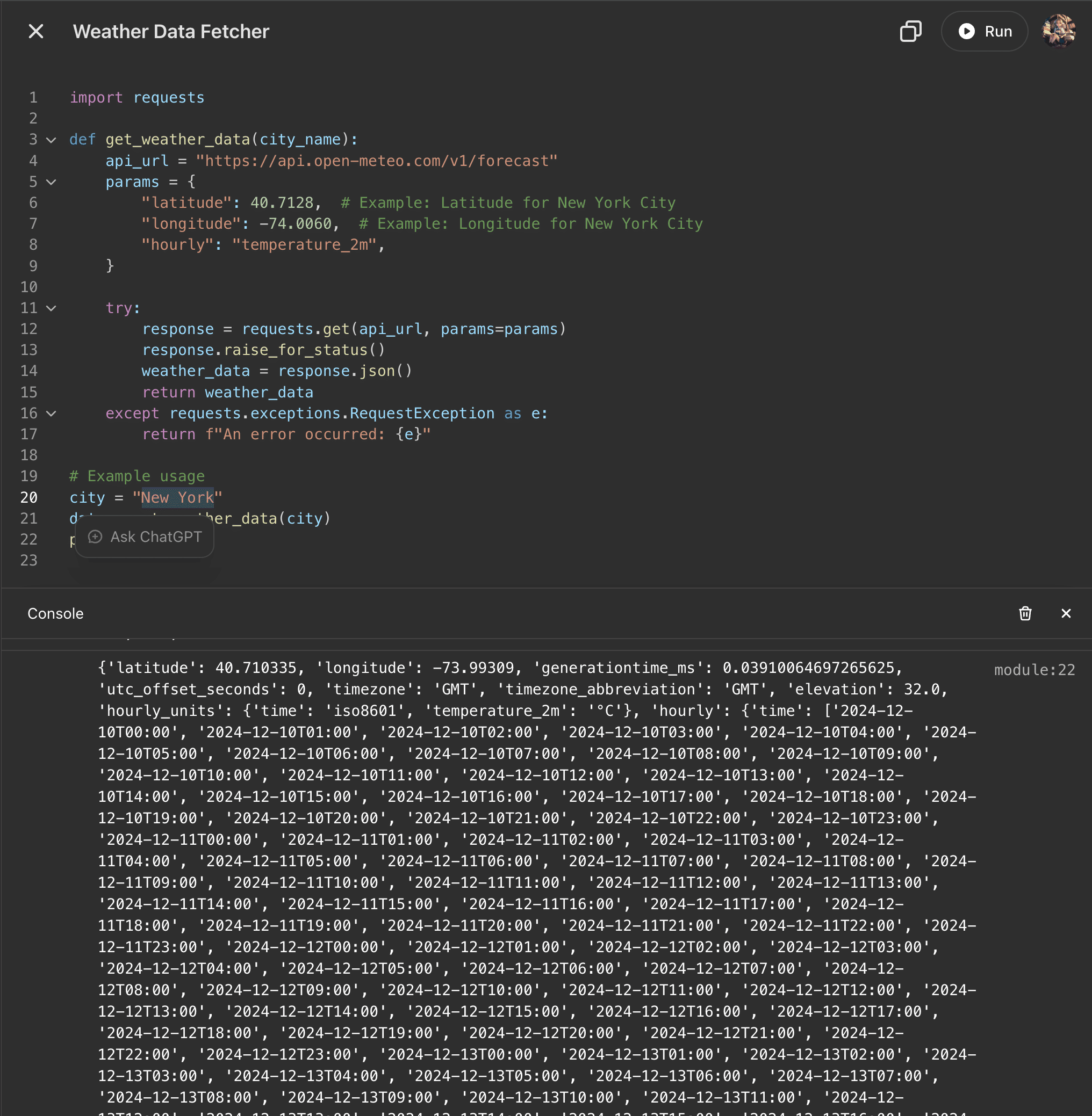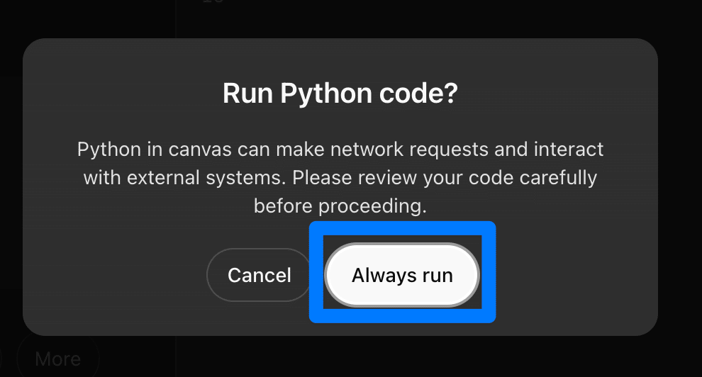 今回のアップデートで確認された重要なポイントとして、Canvas上で動かすPythonコードが外部APIへのリクエストを実行可能となりました。