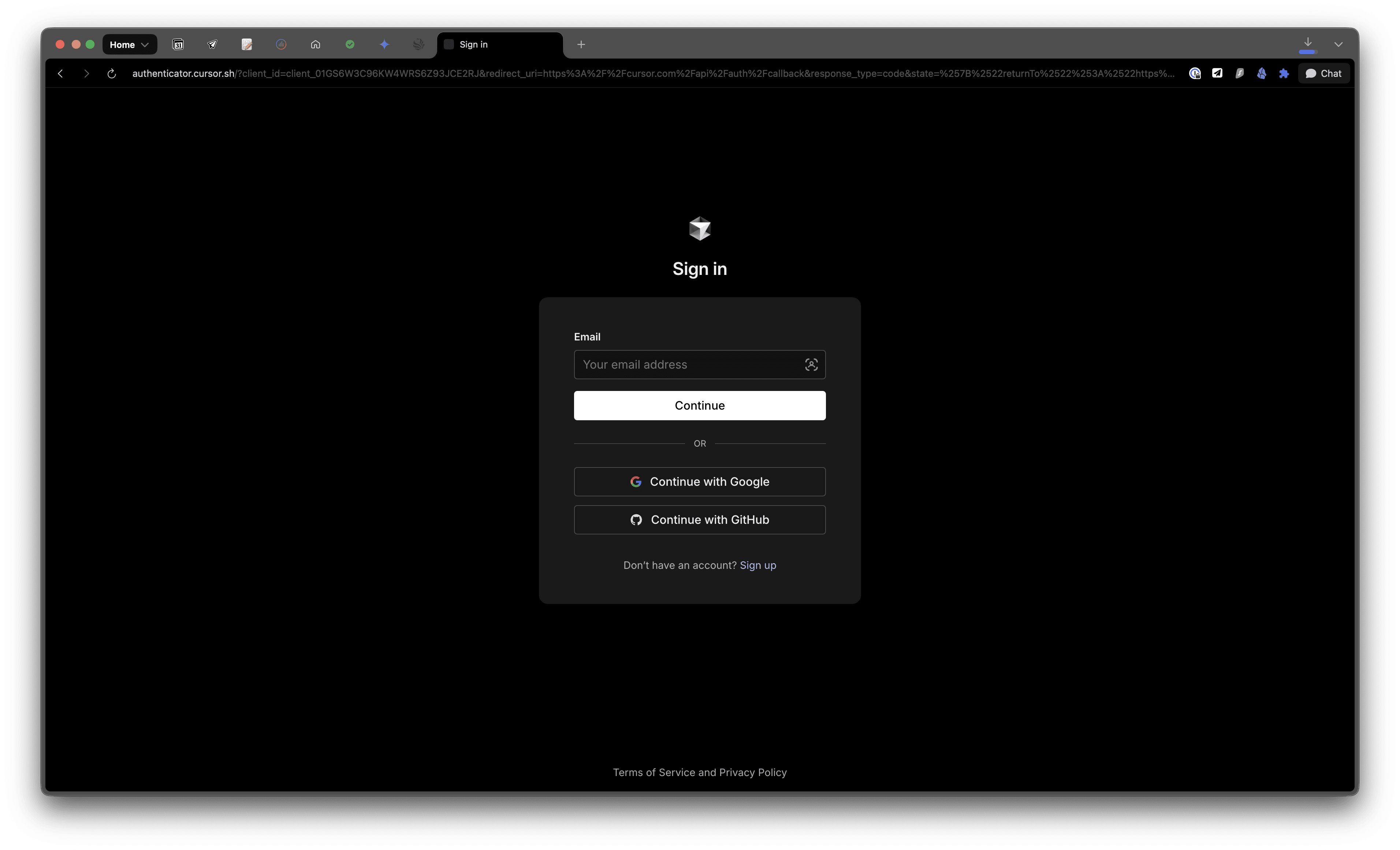 ② サインイン: お使いのCursorアカウントでサインインします。