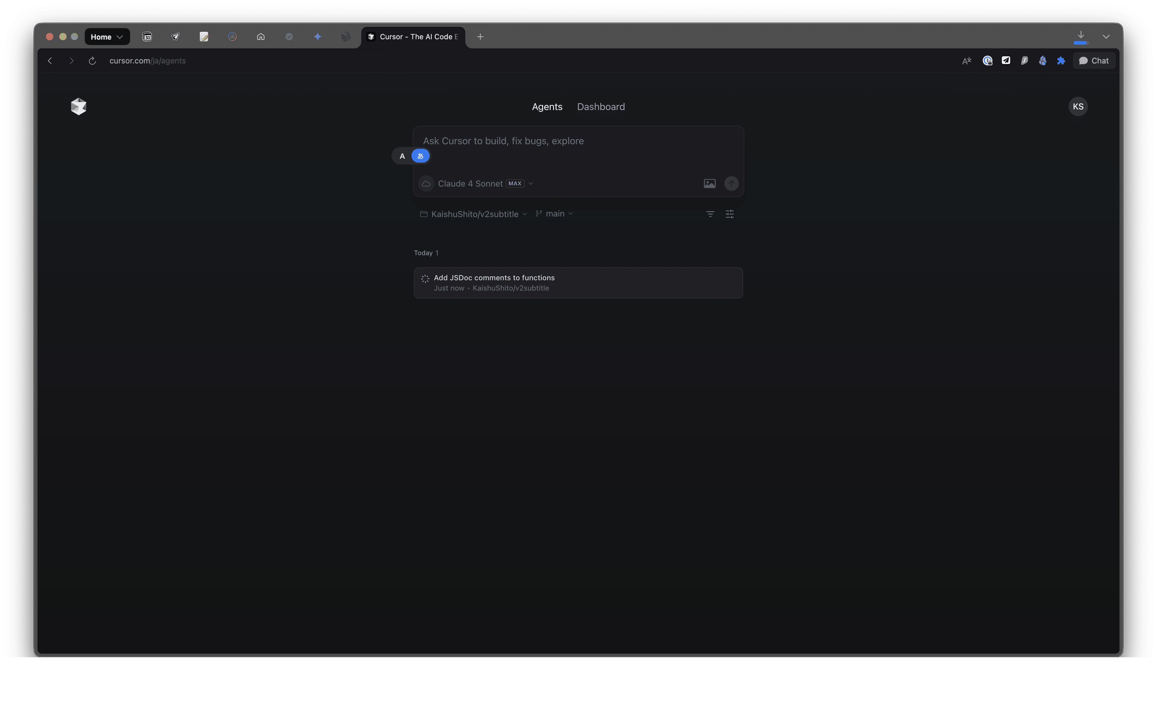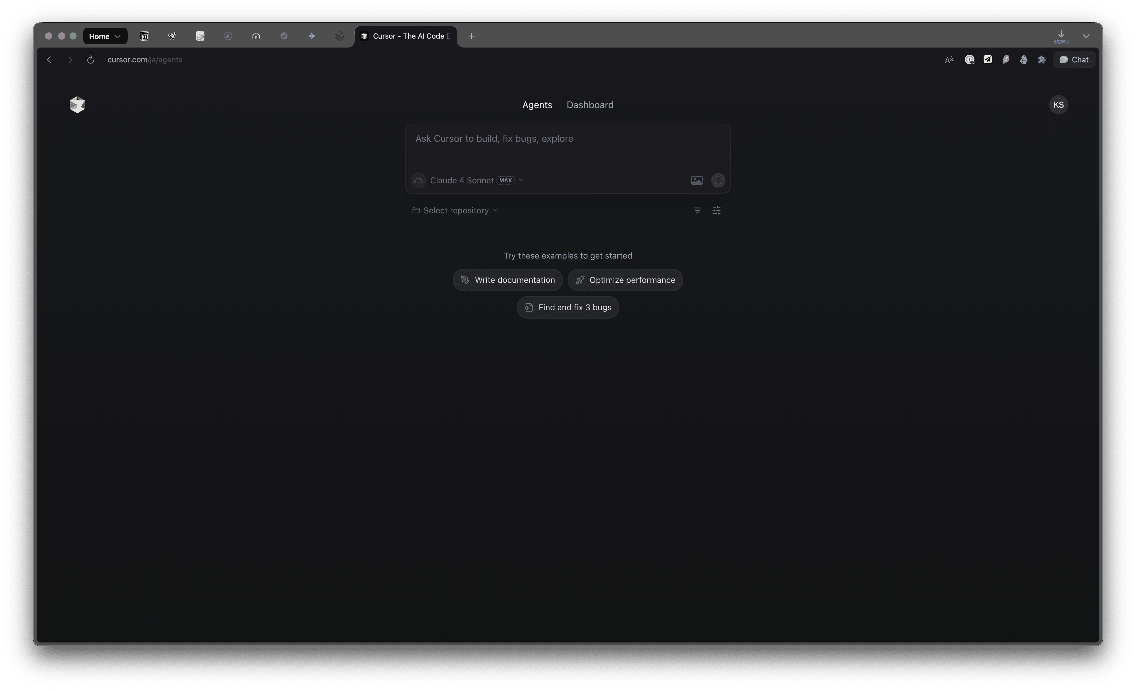 ① Chromeで `cursor.com/agents` を開きます。