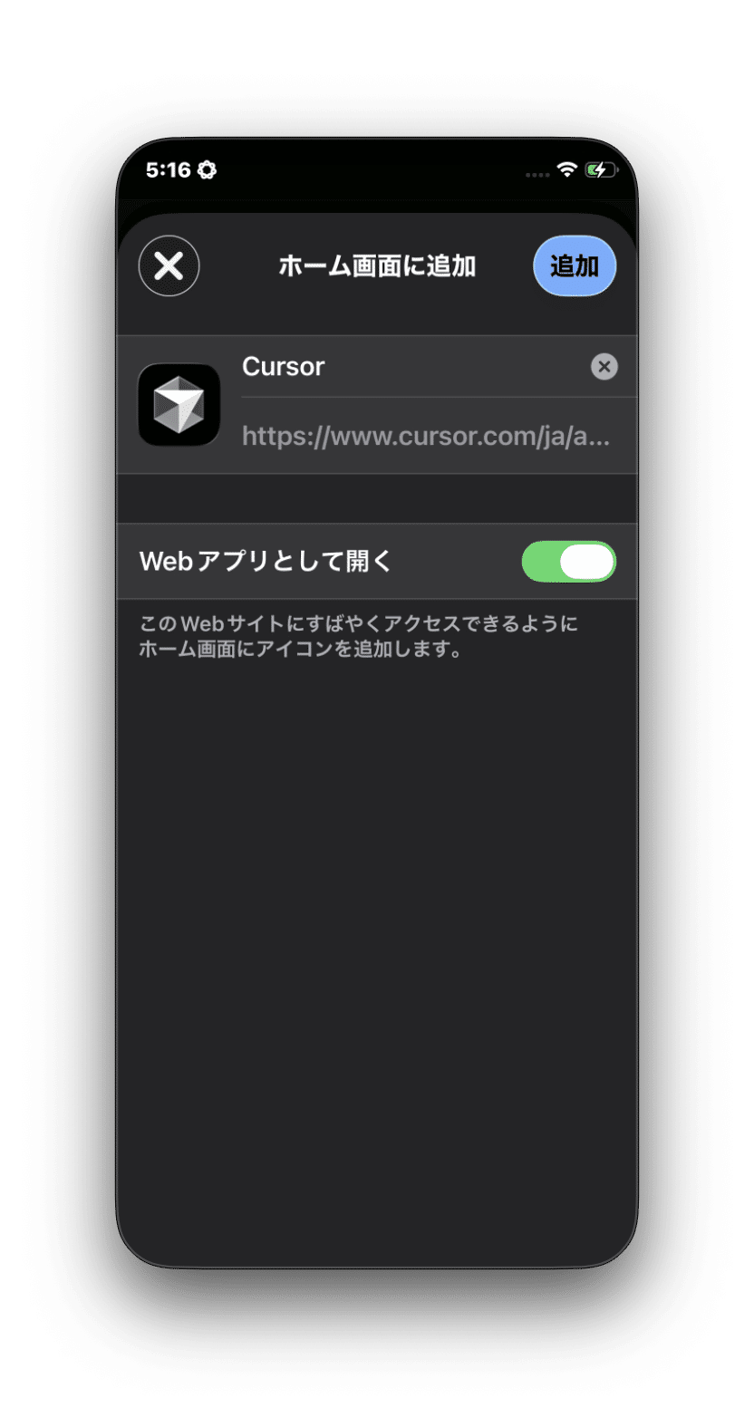 これで、ホーム画面に追加されたアイコンからアクセスできるようになります。