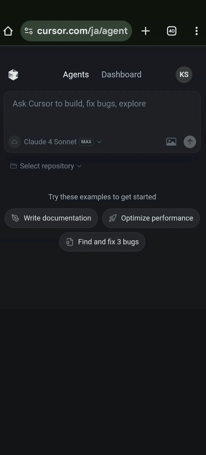 ① Webアプリにアクセス: ブラウザで `cursor.com/agents` を開きます。