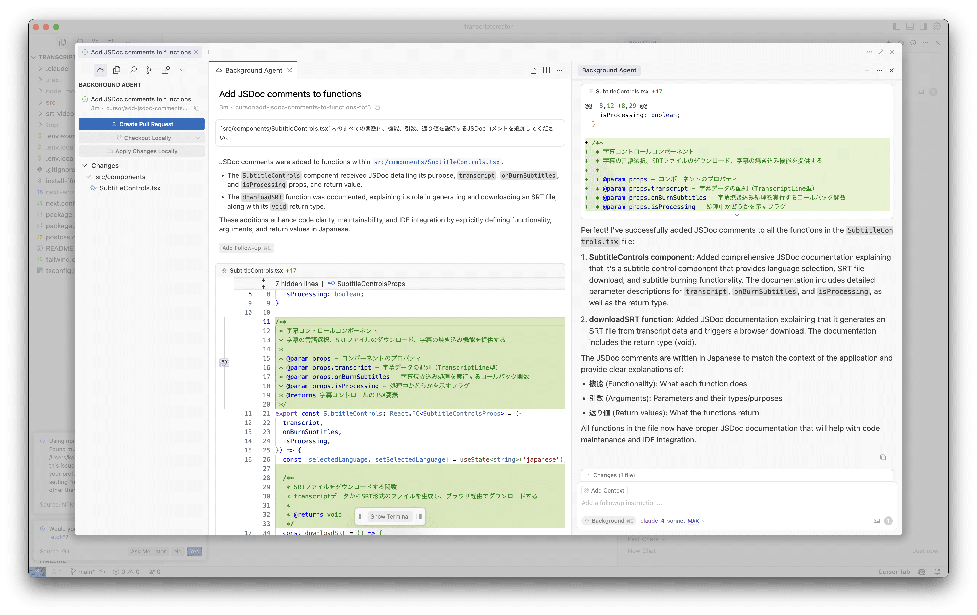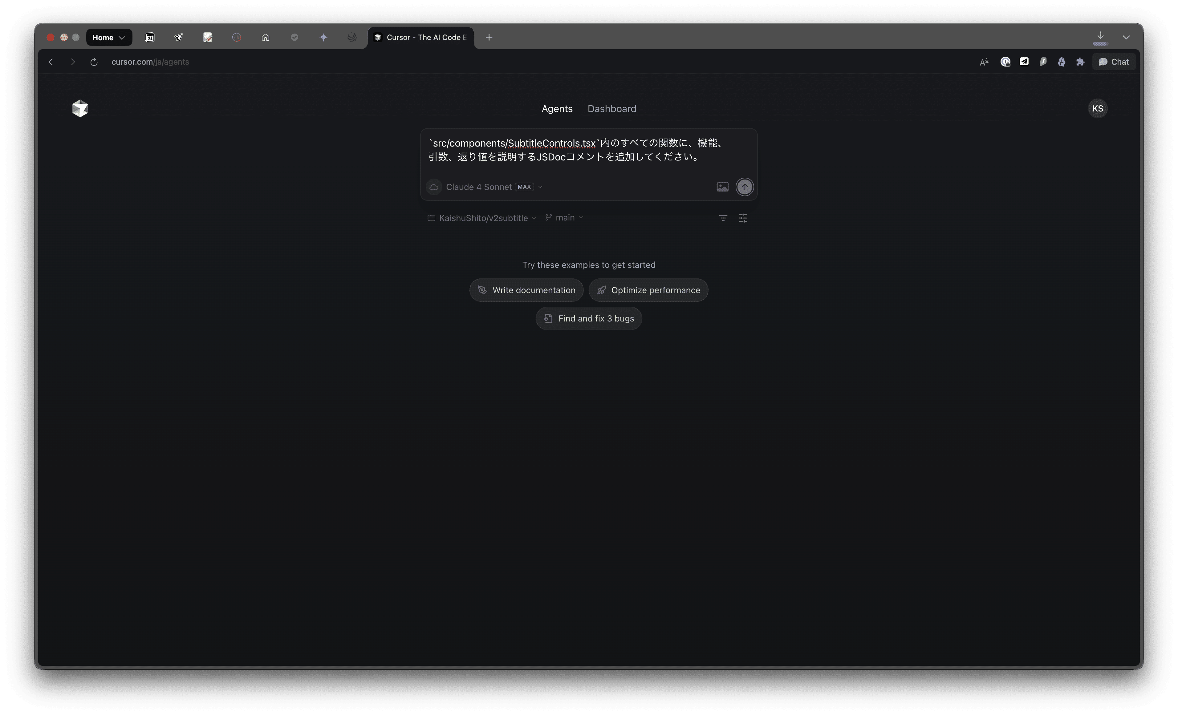 プロンプトを送信すると、エージェントがバックグラウンドで作業を開始てくれます。