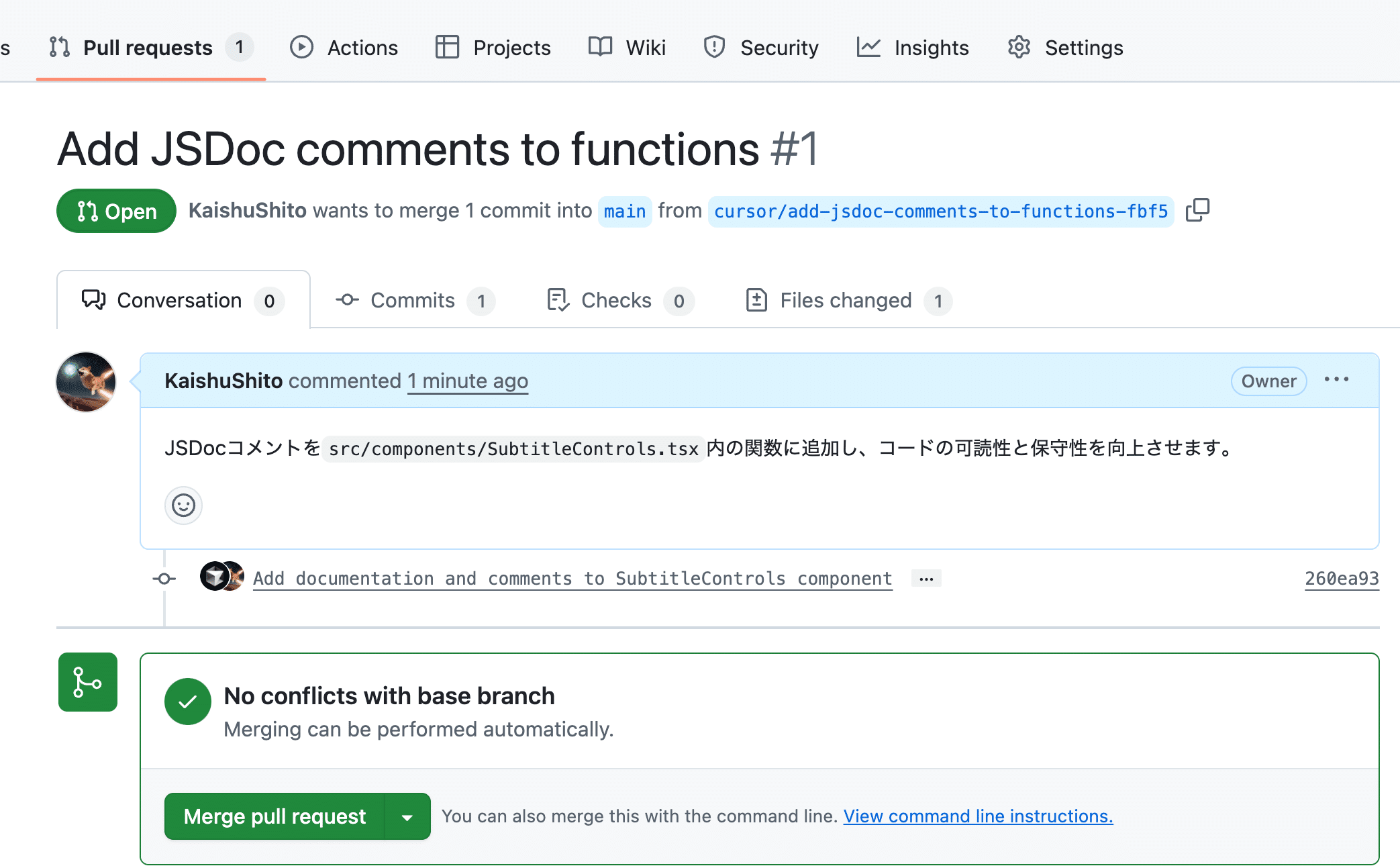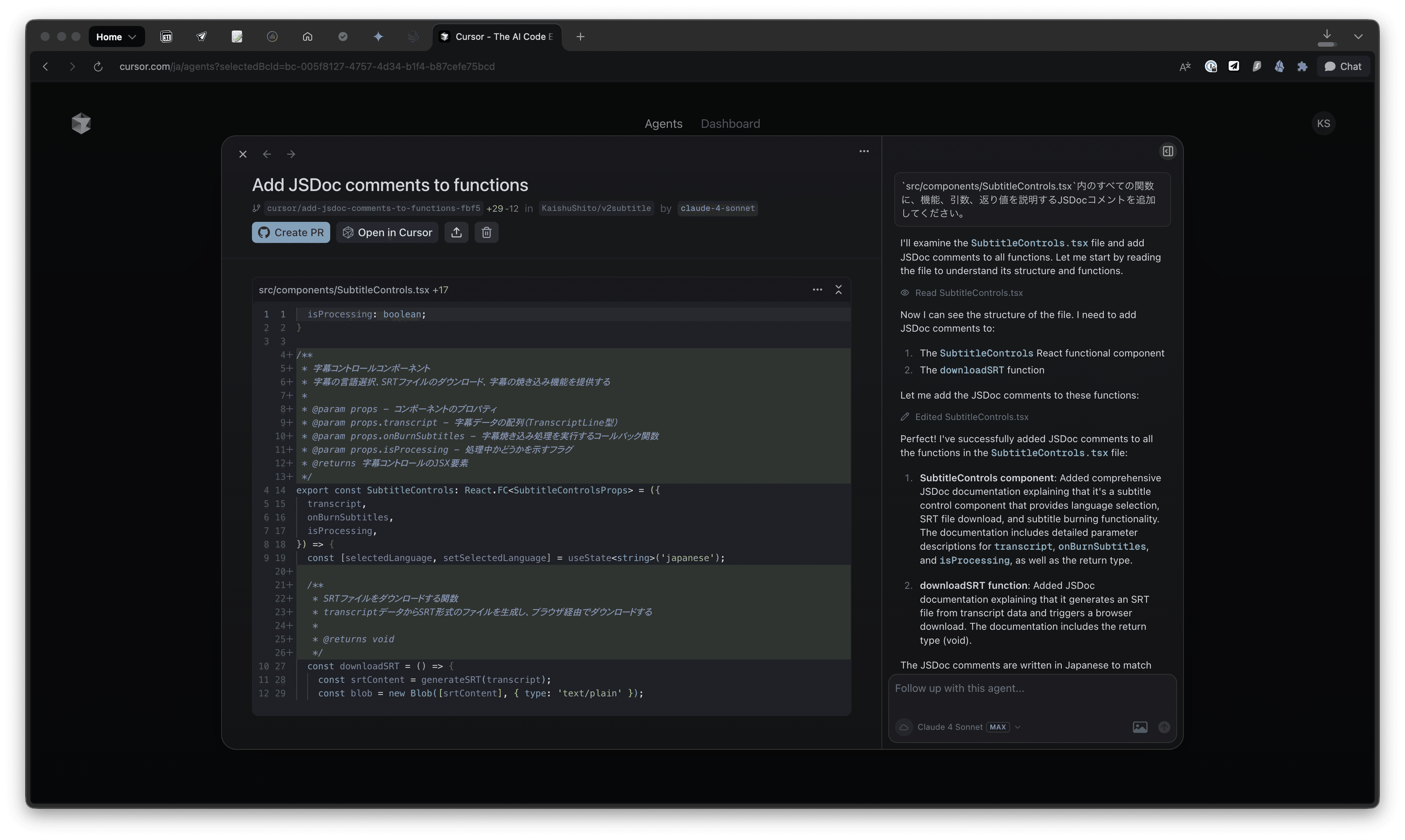プルリクエストの作成: エージェントの作業が完了し、内容に問題がなければ、Web UIから直接プルリクエストを作成できます。