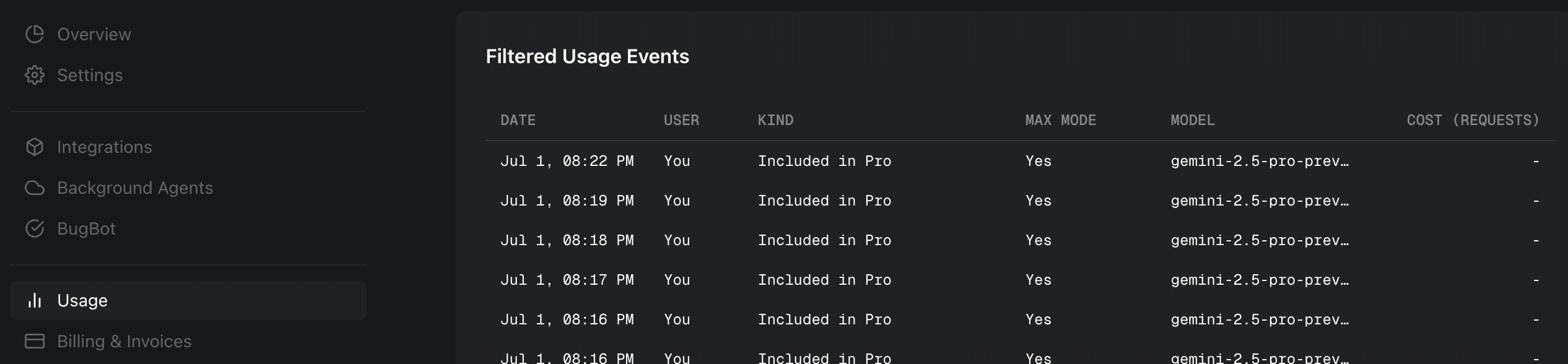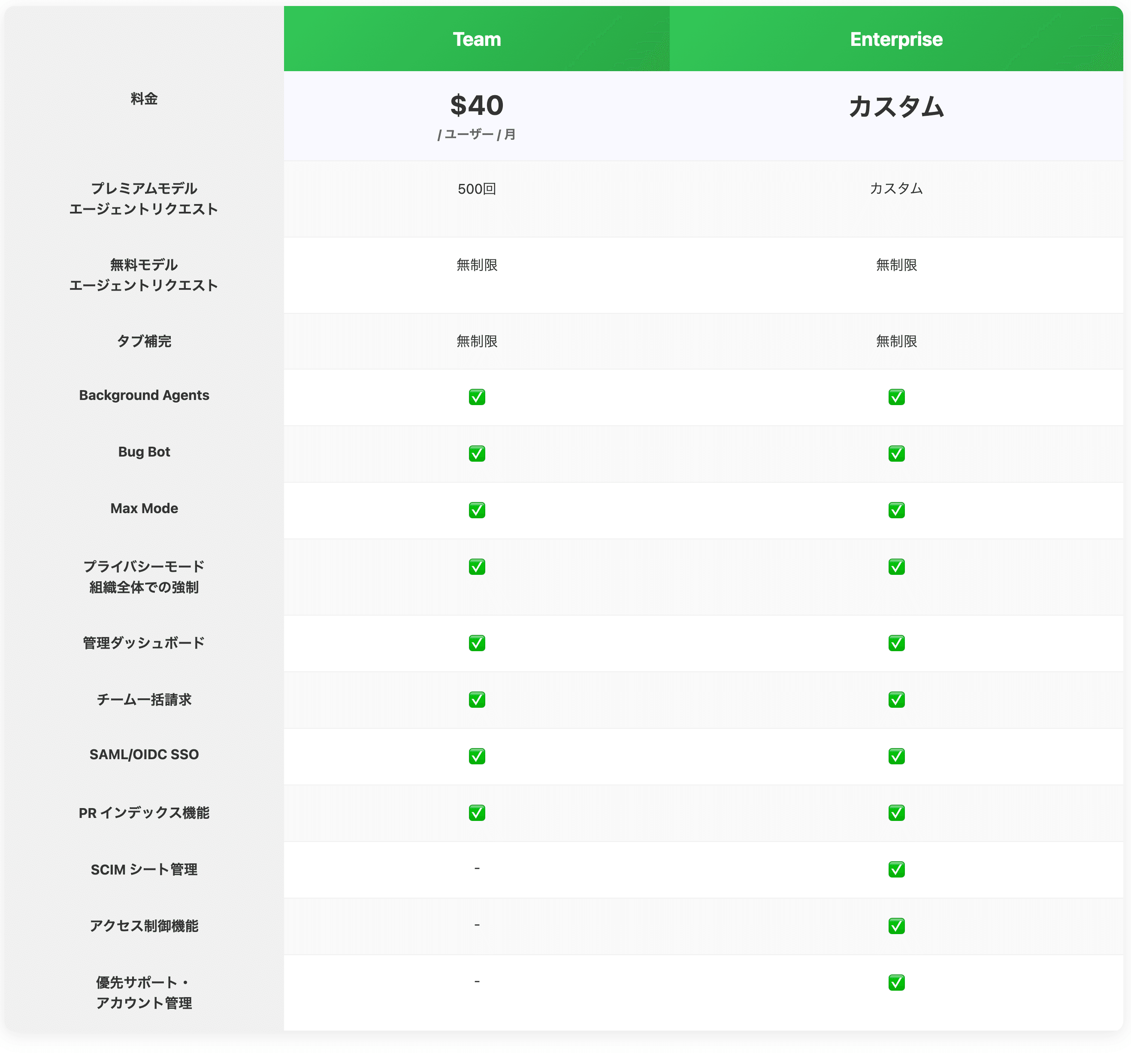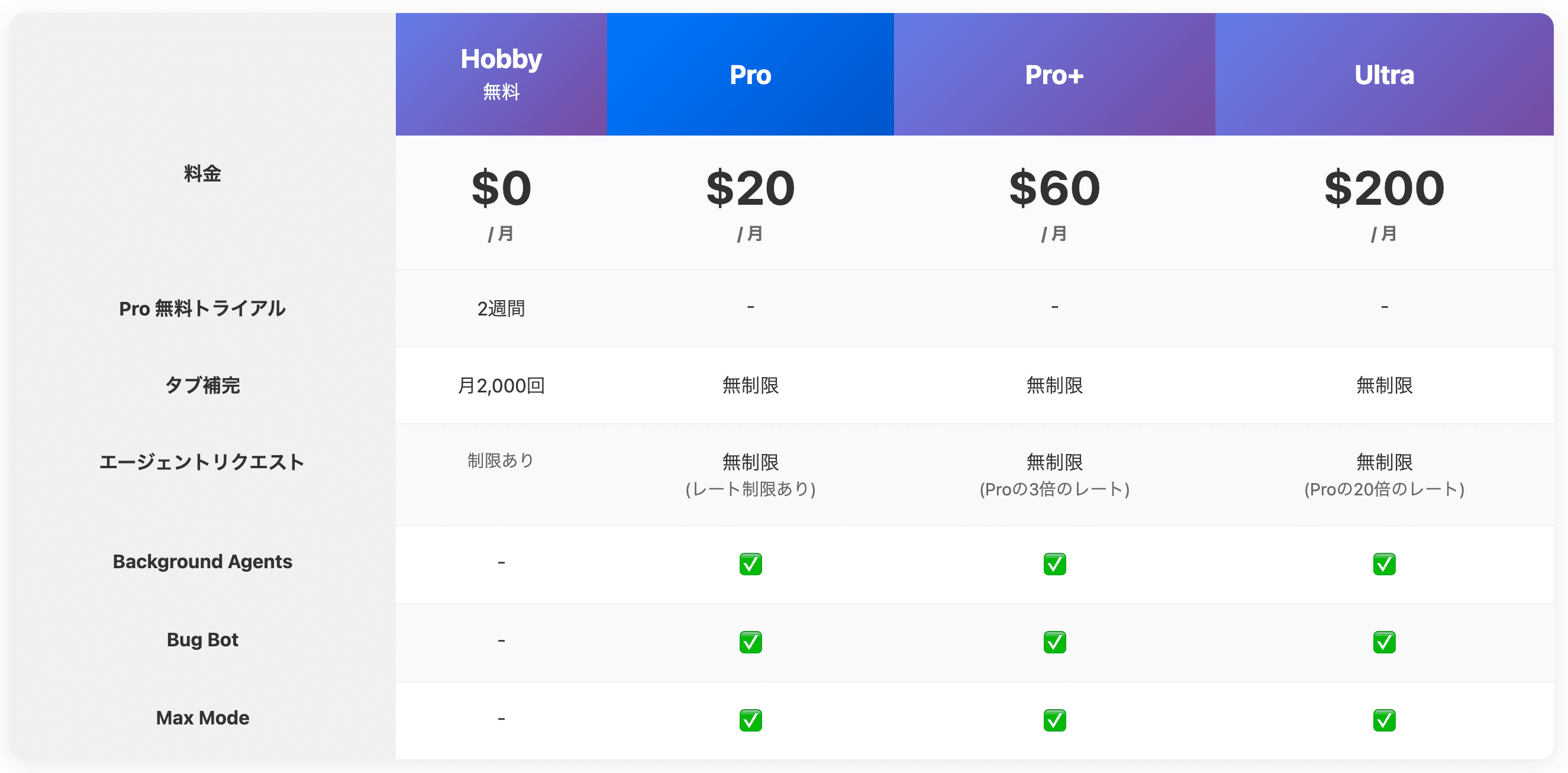 ちなみに、Cursorのプランは以下のようになっています: