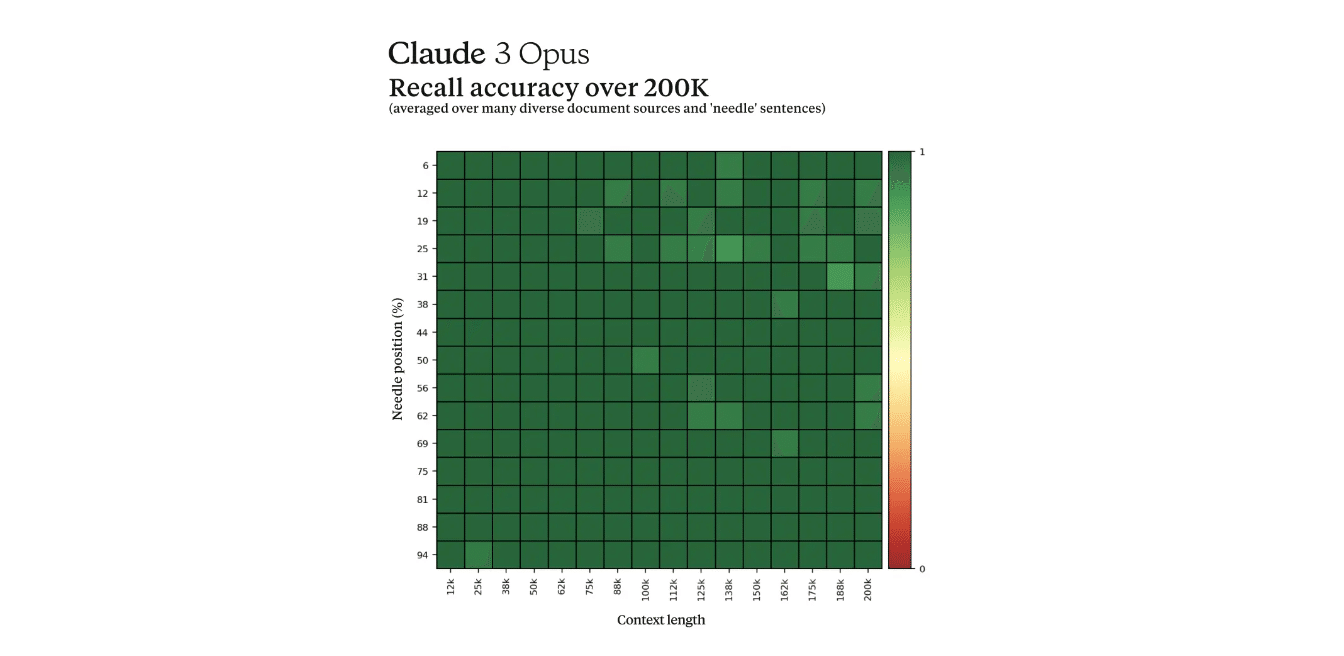 また、大量のコーパスから情報を高精度で思い出す能力も重要です。Claude 3 Opusは「Needle In A Haystack」評価で99%以上の精度を達成。人間による加工痕跡まで見抜くほどの性能を発揮しました。