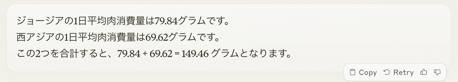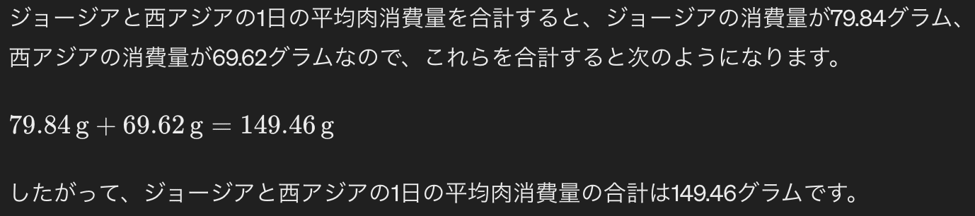 質問7. ジョージアと西アジアの1日の平均肉消費量の合計は?