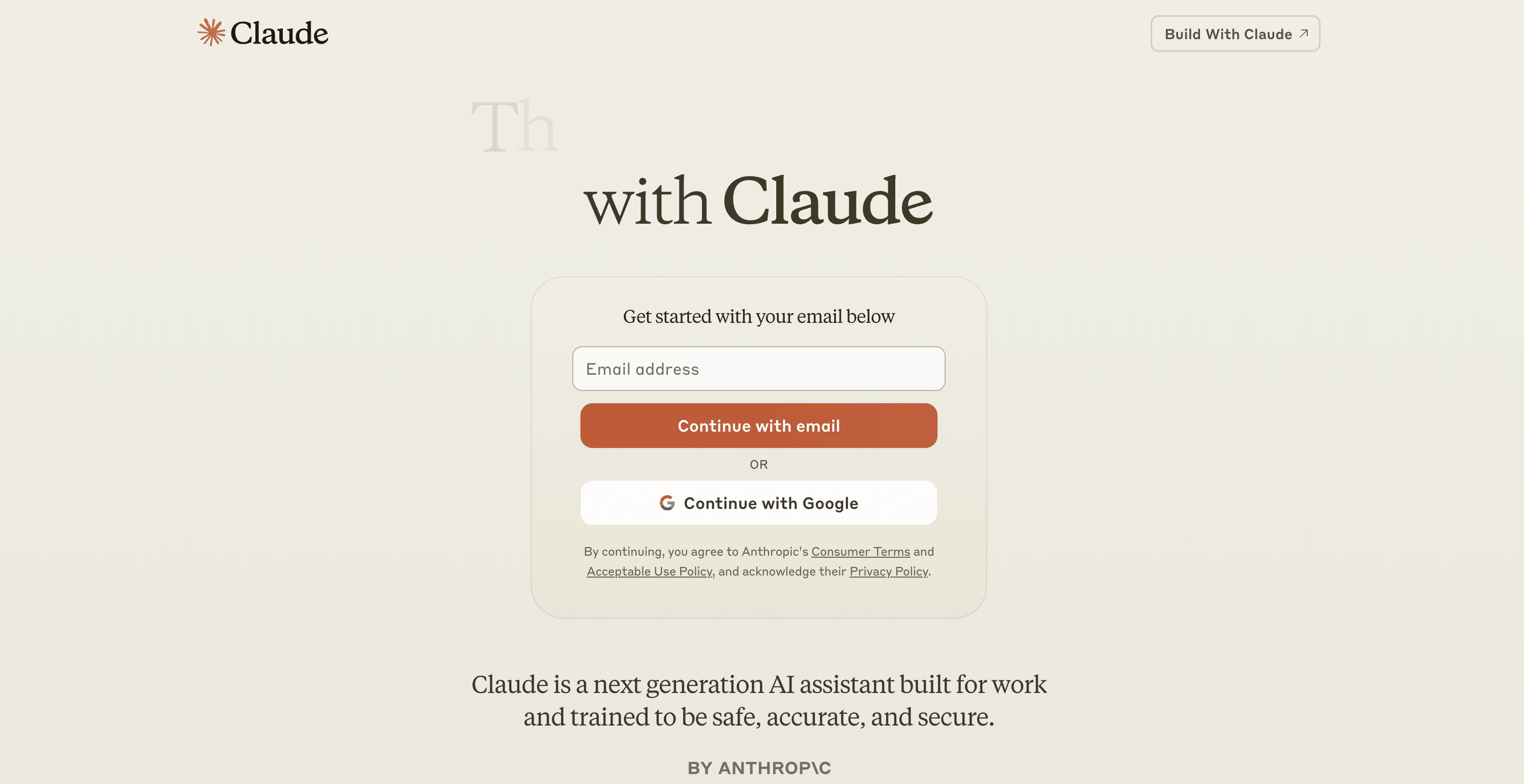 Step1. 以下のリンクから Claude にログイン、または新しくアカウントを作成します。