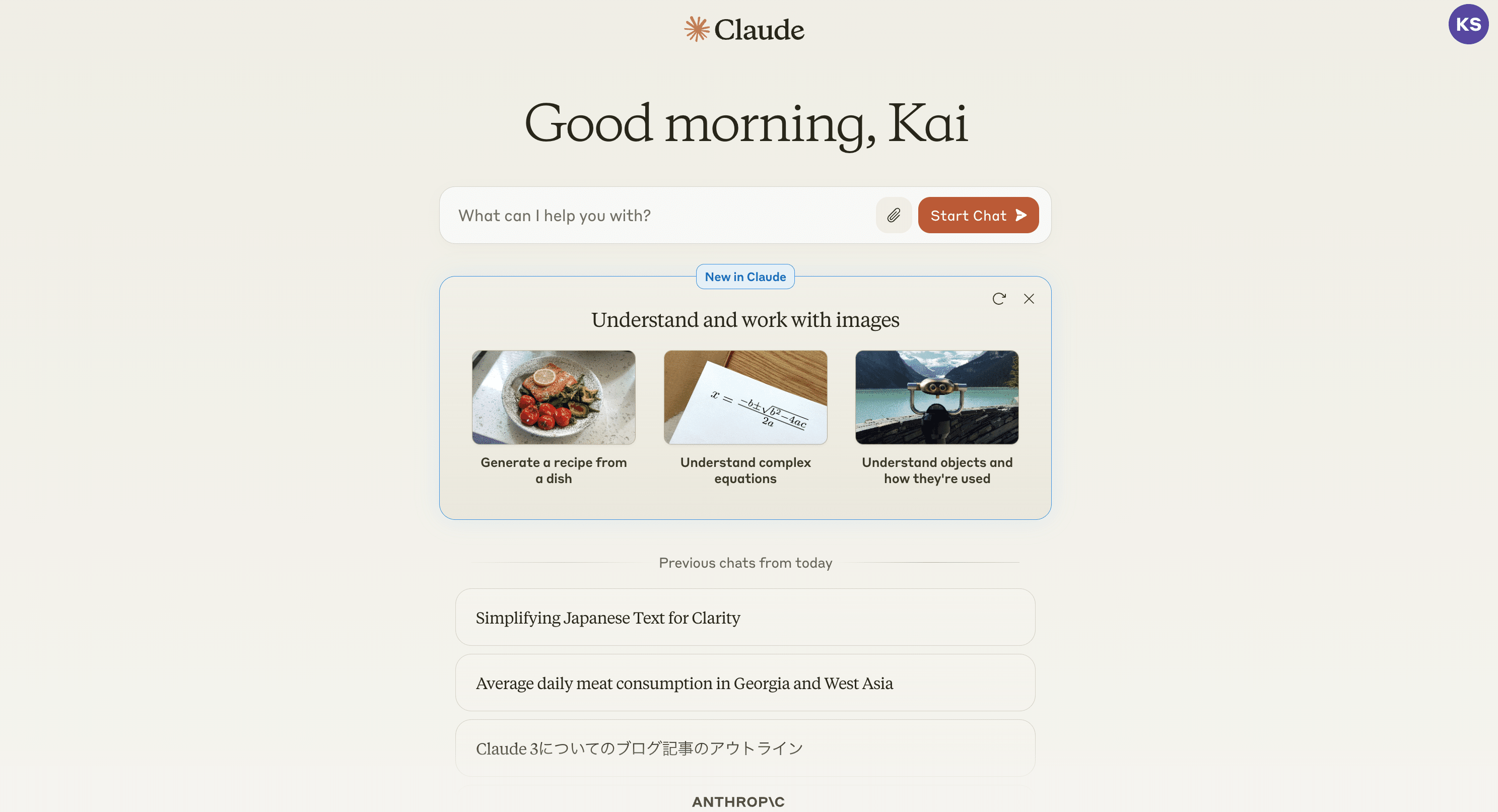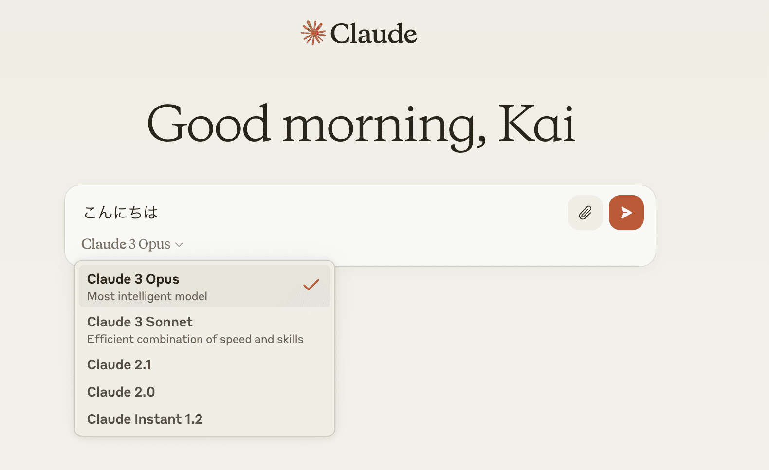 Claudeは最高性能モデルである「Claude 3 Opus」を、Web版のclaude.aiから使用します。