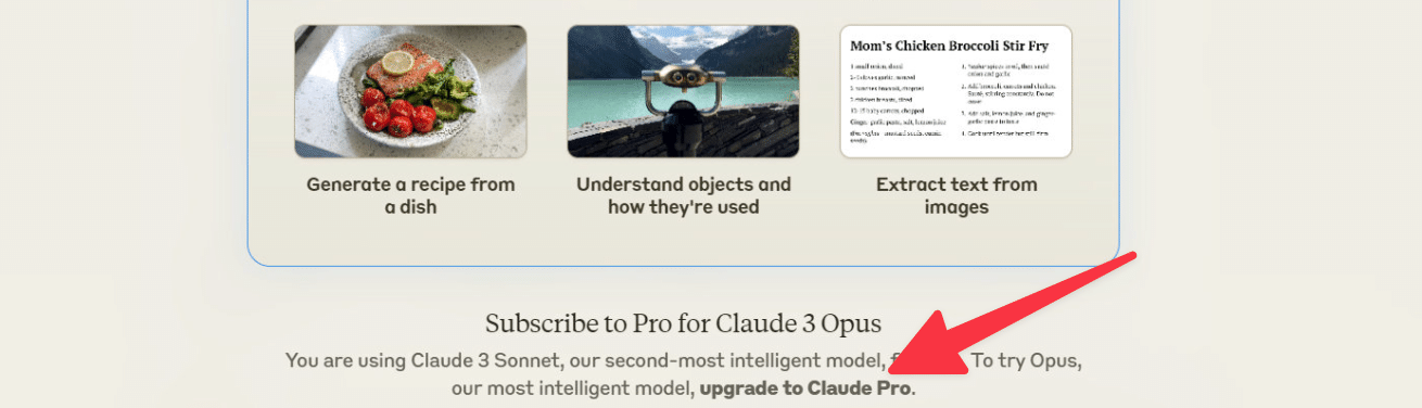 Claude 3 Opusが使えるProプランへの登録は、画面下部の矢印部分から可能です。クレジットカードなどの登録が必要になります。