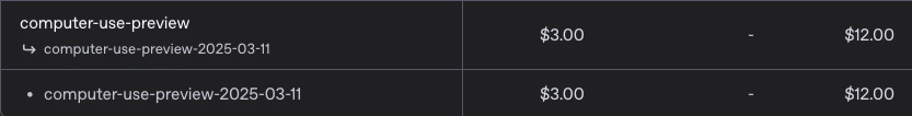 Computer Use:入力トークン100万あたり3ドル、出力トークン100万あたり12ドル