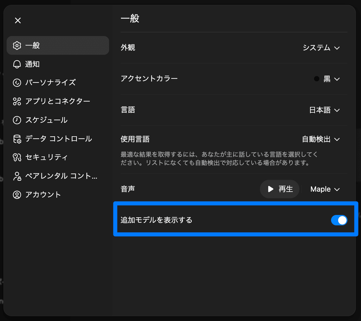 これに加え、設定で「Show additional models」を有効にすると、GPT-4.1やo3などのレガシーモデルも選択できます。