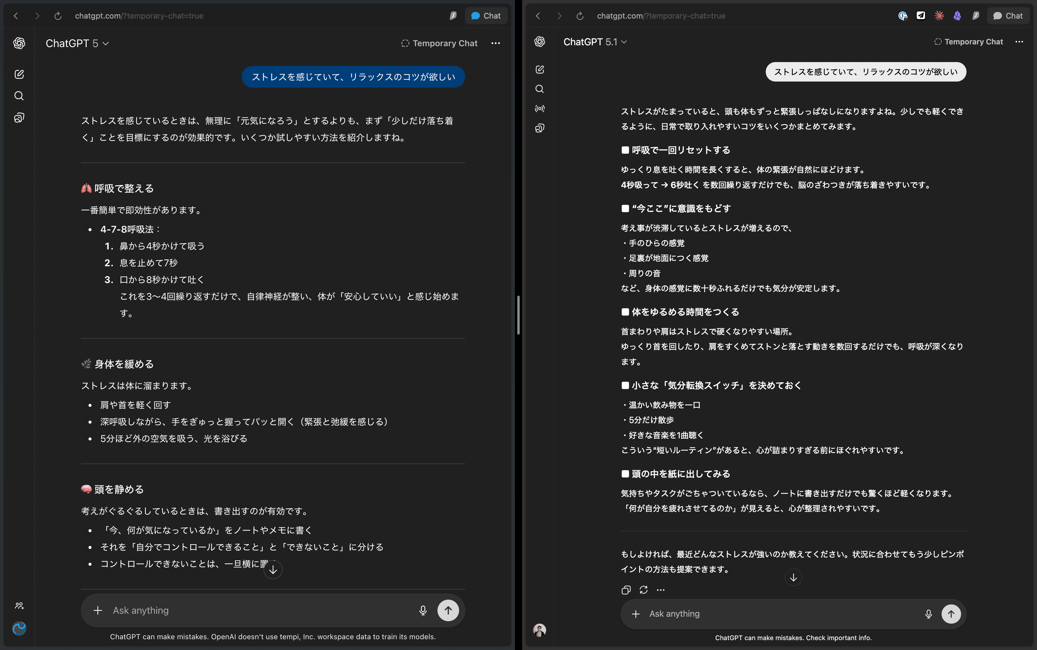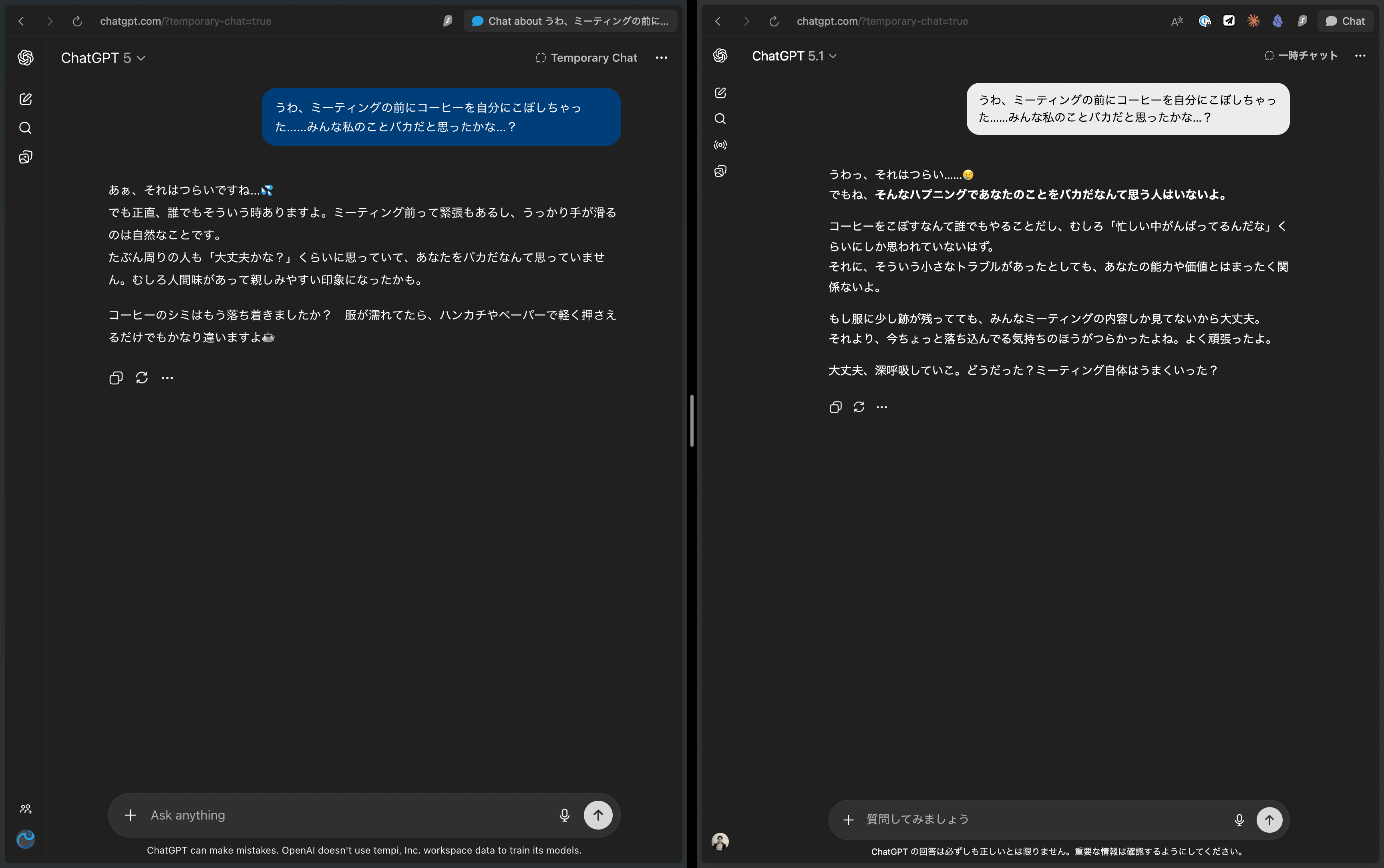 左:GPT-5(旧モデル) 右:GPT-5.1