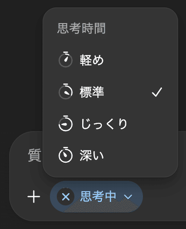 ただしThinkingのような「じっくりモード」ではなく、あくまで日常利用の範囲で軽めに調整するイメージです。