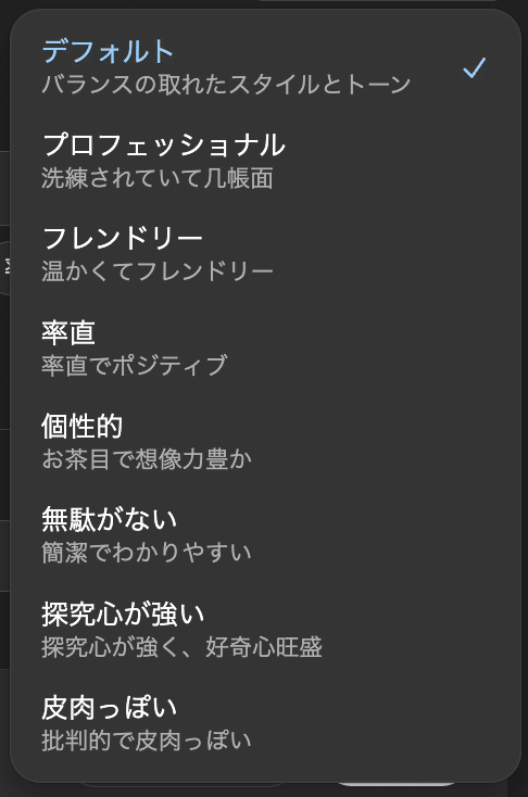 トーンやパーソナライズ設定を組み合わせることで、硬めの技術文からカジュアル寄りの会話まで幅広く調整できます。