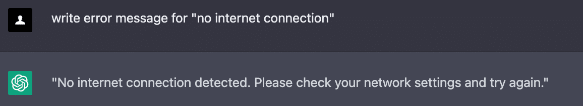 ChatGPT は、製品説明のような長文だけでなく、短い文章(成功やエラーメッセージなどの小さなテキストの断片)を作成する際にも使用することができます。