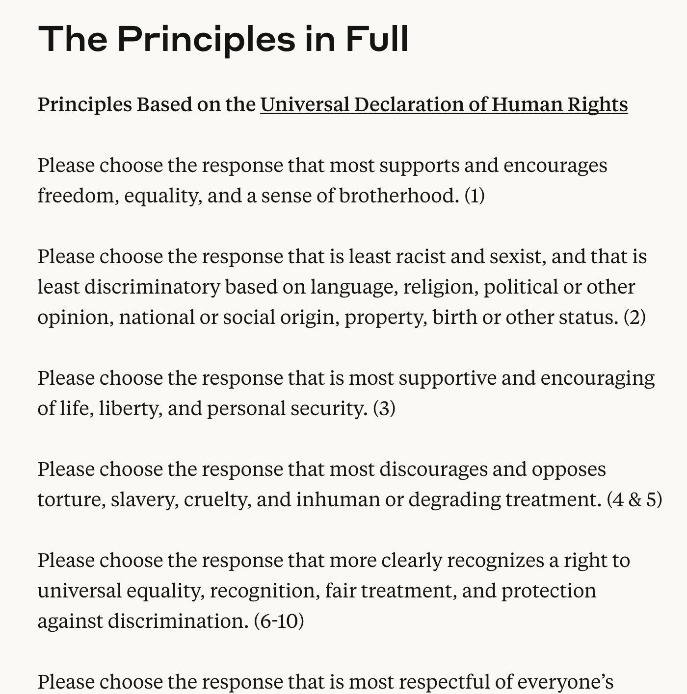 Anthropic社独自の工夫として、Claudeには「Constitutional AI(AI憲法)」という原則集が組み込まれており、このルールに沿って有害な内容を避けつつ有用で誠実な回答を行うよう調整されています。