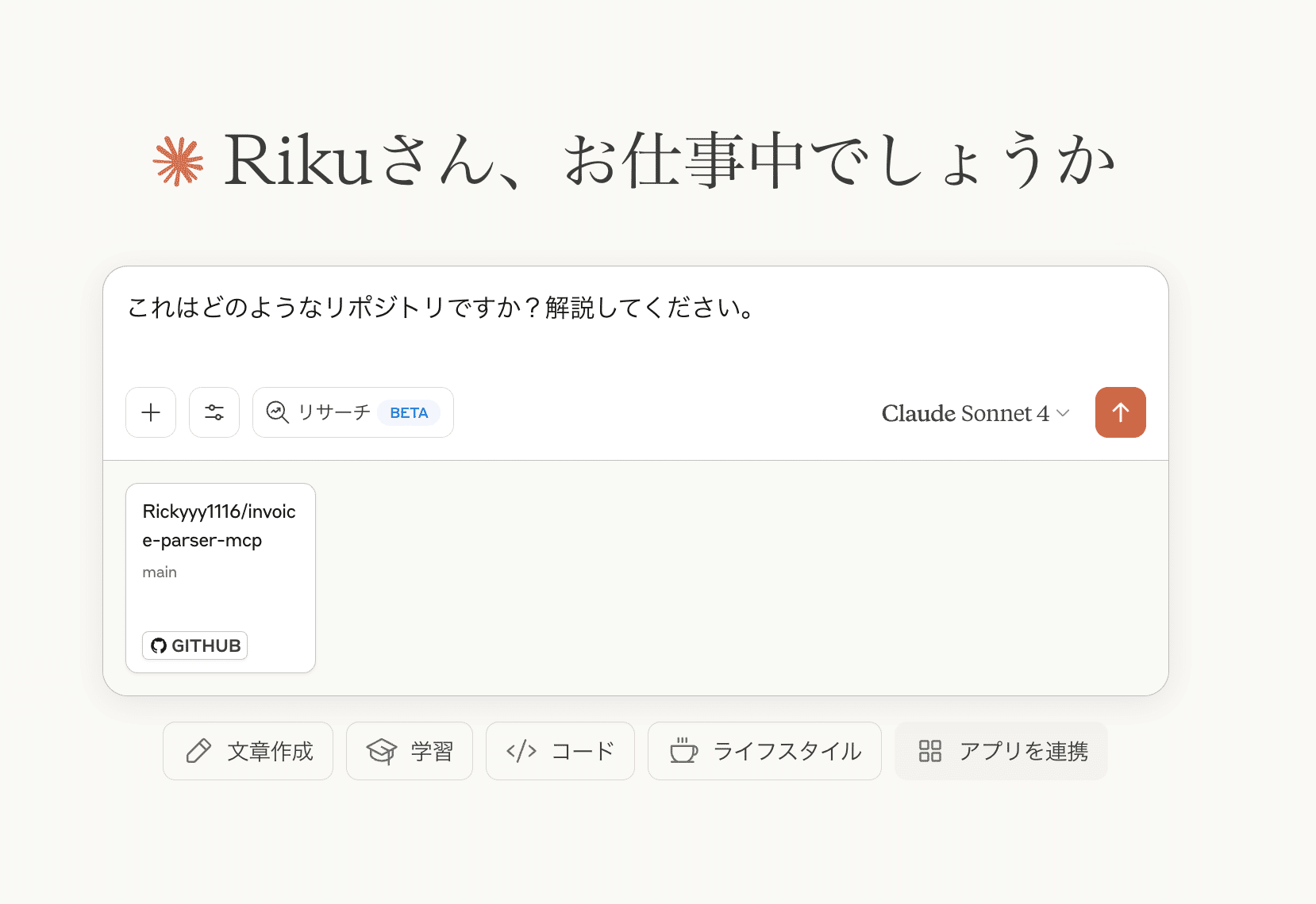 連携ができたら、接続したGithubアカウントのリポジトリをClaudeに共有することができます。