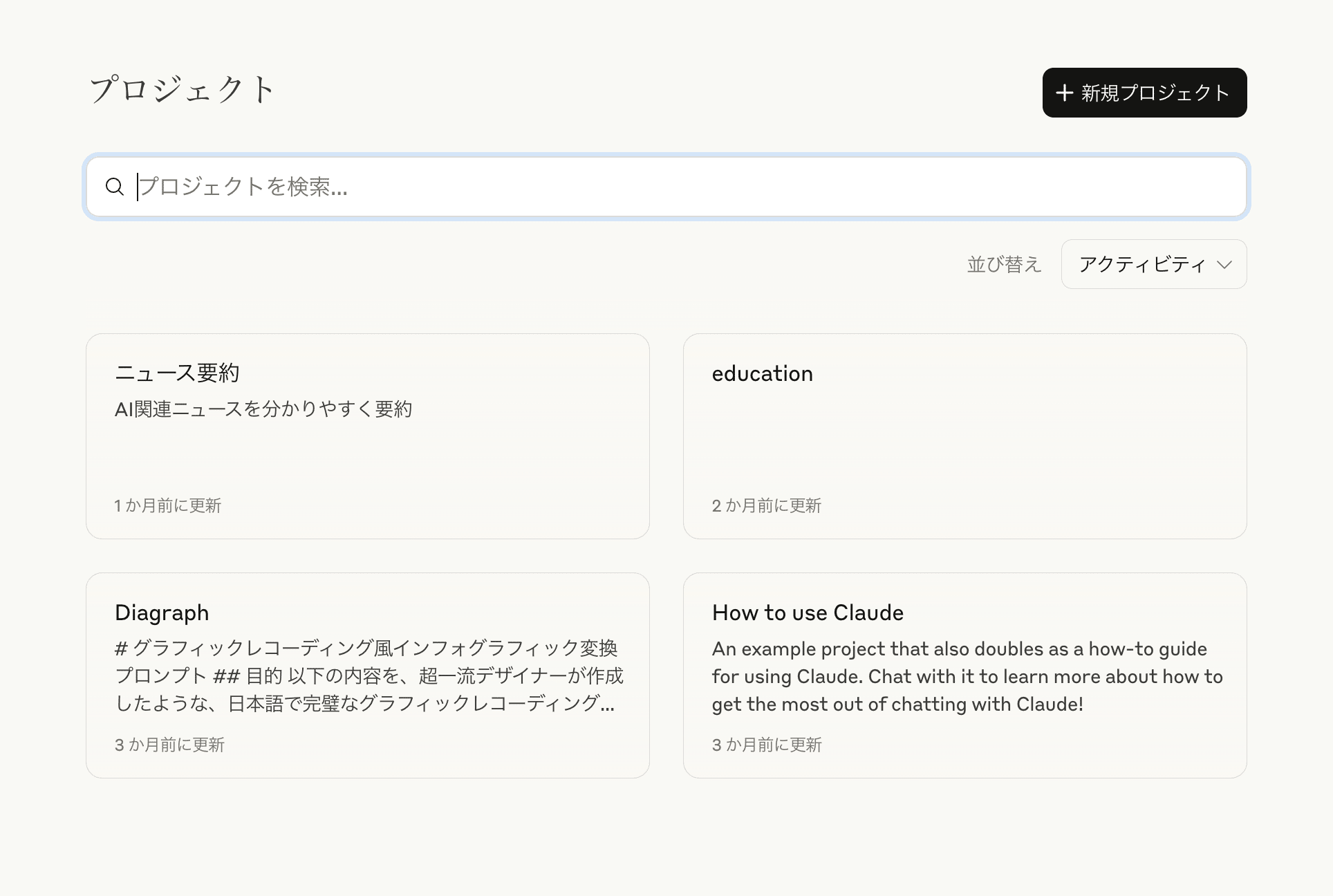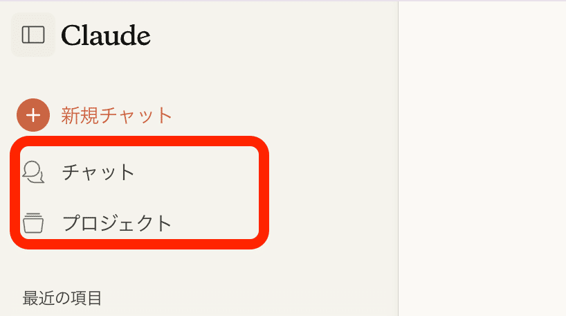 Claudeの主な機能は、チャットとプロジェクトと呼ばれる機能になります。