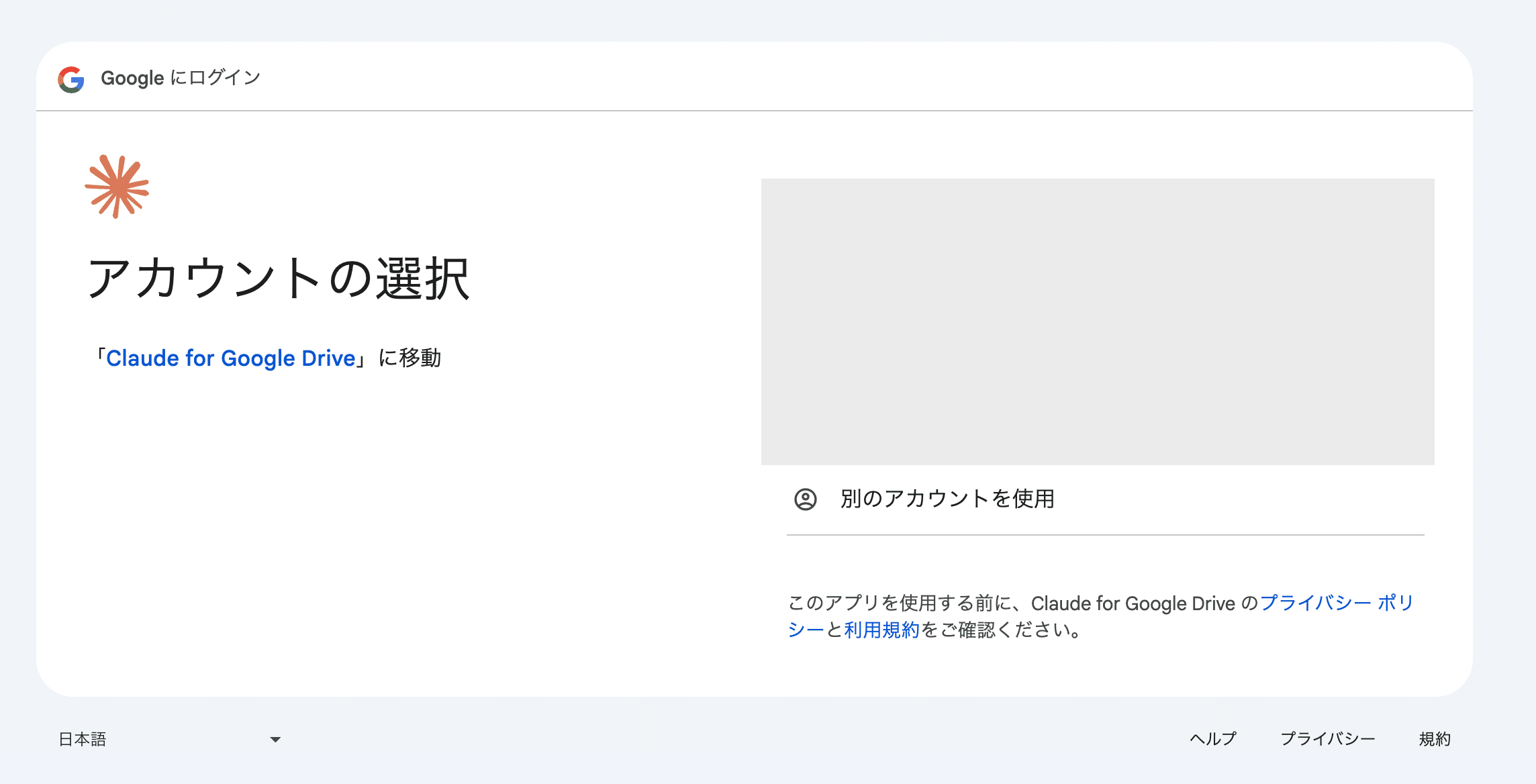 Googleアカウントの接続を行っていない場合は、Googleアカウントとの接続設定画面が表示されるので、指示に従って連携を行います。