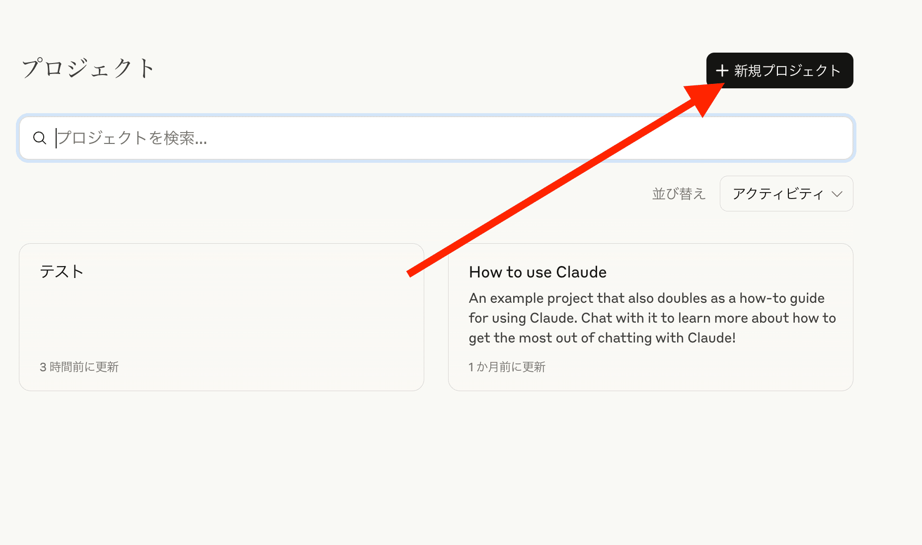 プロジェクトを開いたら、「+ 新規プロジェクト」をクリックします。