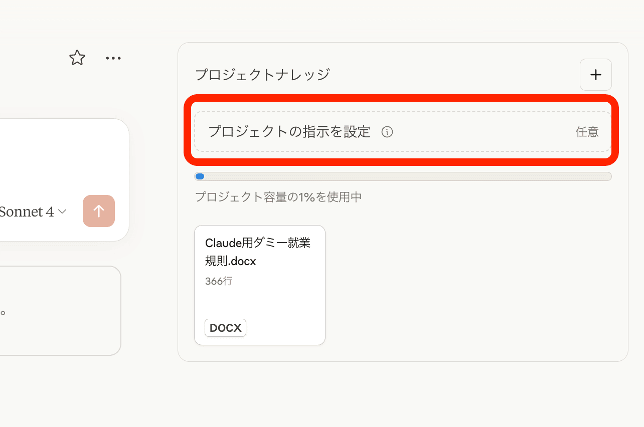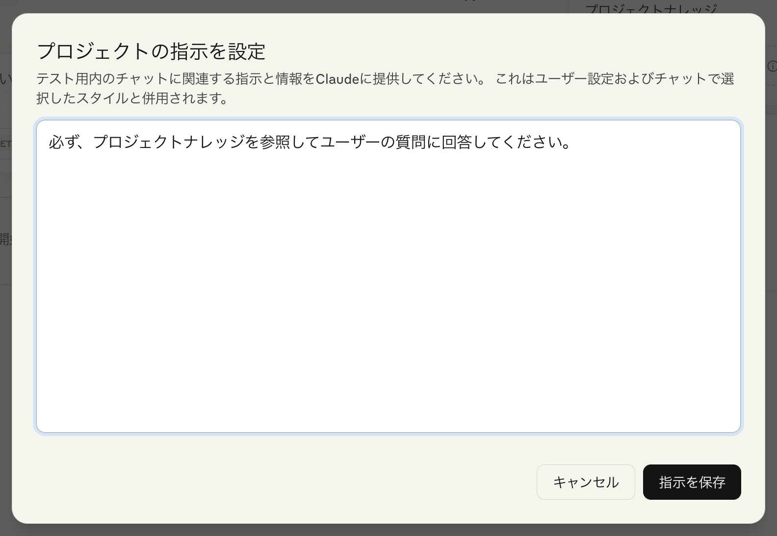 入力画面が出てくるので、例えば「回答は常に敬語で」「専門用語の説明を詳しく」などルールを記入すると、そのプロジェクト内のやり取りでは毎回その指示を守るようになります。