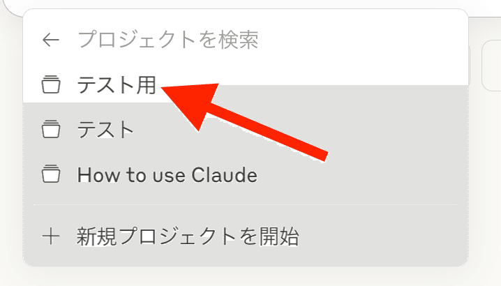 選択したプロジェクトの名前がチャットUIに表示されます。