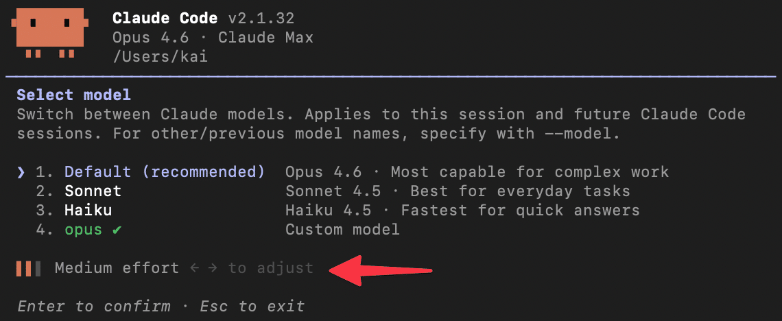 これまで拡張思考(extended thinking)はON/OFFの二択でしたが、Opus 4.6では Adaptive Thinking が導入されました。モデル自身が文脈から「深く考えるべきか」を判断します。