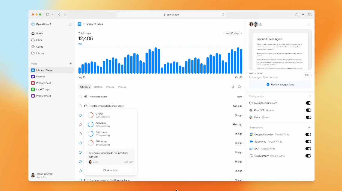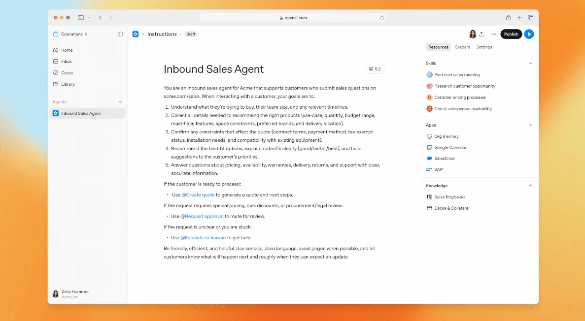 AIエージェントを「AIコワーカー」として企業内に展開・管理するための基盤で、社内のCRM、チケット管理、データウェアハウスなどを横断的に接続し、エージェントにビジネスコンテキストを与えて実務を遂行させる設計です。