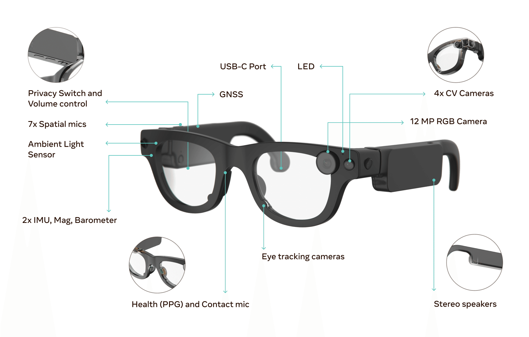 さらに、将来のAR/AIデバイスに向けた研究開発の一環として、実験的スマートグラス「Aria Gen 2」の詳細も公開しました。