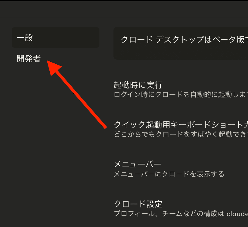 Claude Desktopで開発者モードを有効化