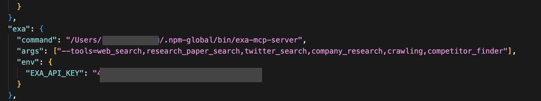 "EXA_API_KEY": "[あなたのEXA_API_KEY]"