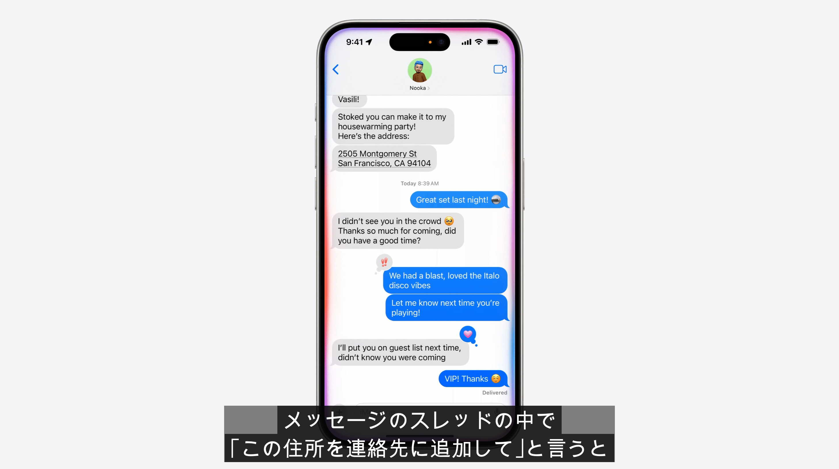 例えば、友人がメッセージで新しい住所を送ってきたとします。その住所が表示されている状態で「この住所を連絡先に追加して」とSiriに指示すれば、自動的に連絡先アプリが開き、新規連絡先作成画面に情報が自動入力されます。