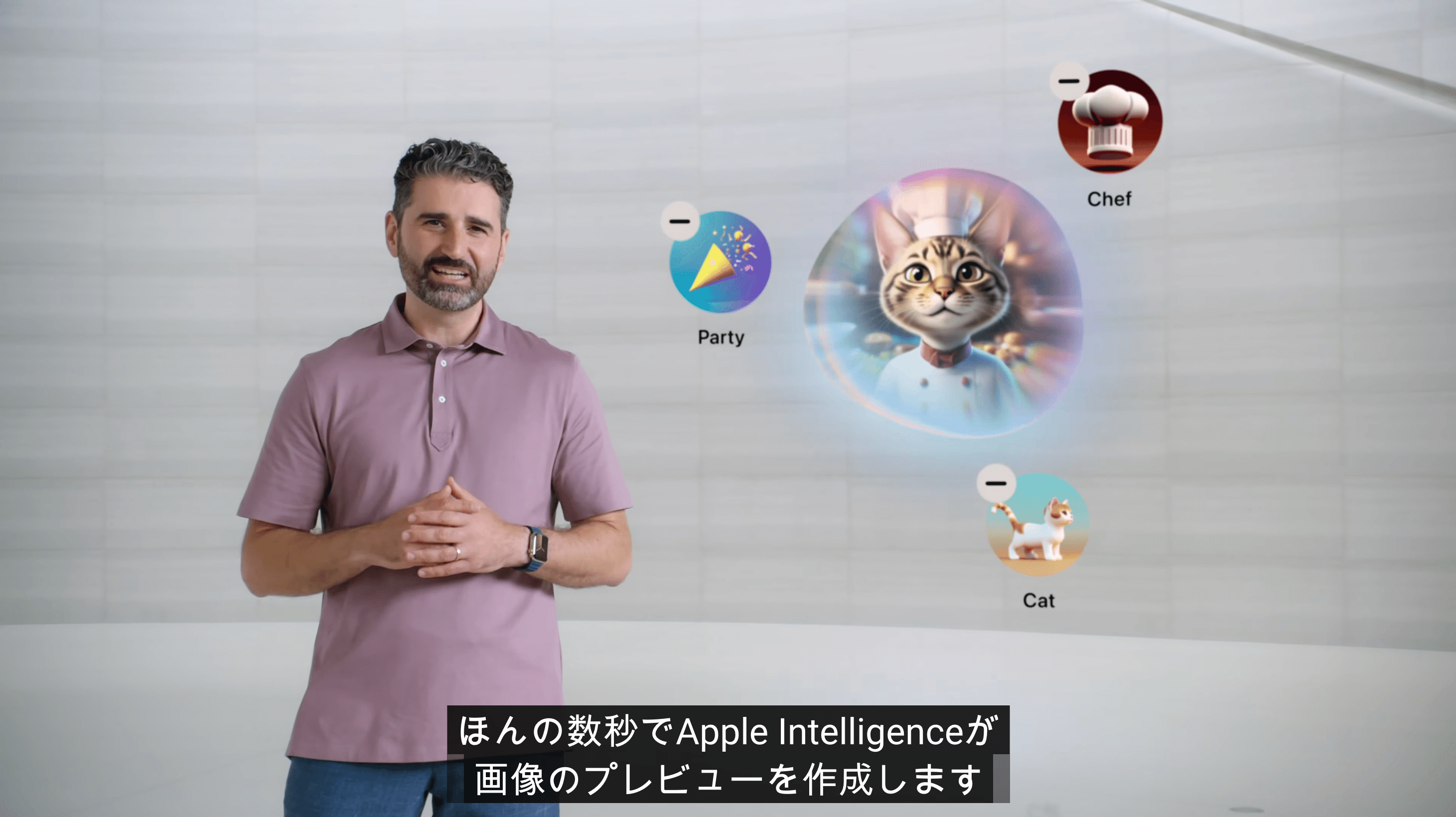 KeynoteやPagesなどのアプリで使える「Image Playground」は、テキストプロンプトから画像に変換してくれる機能も発表されました。