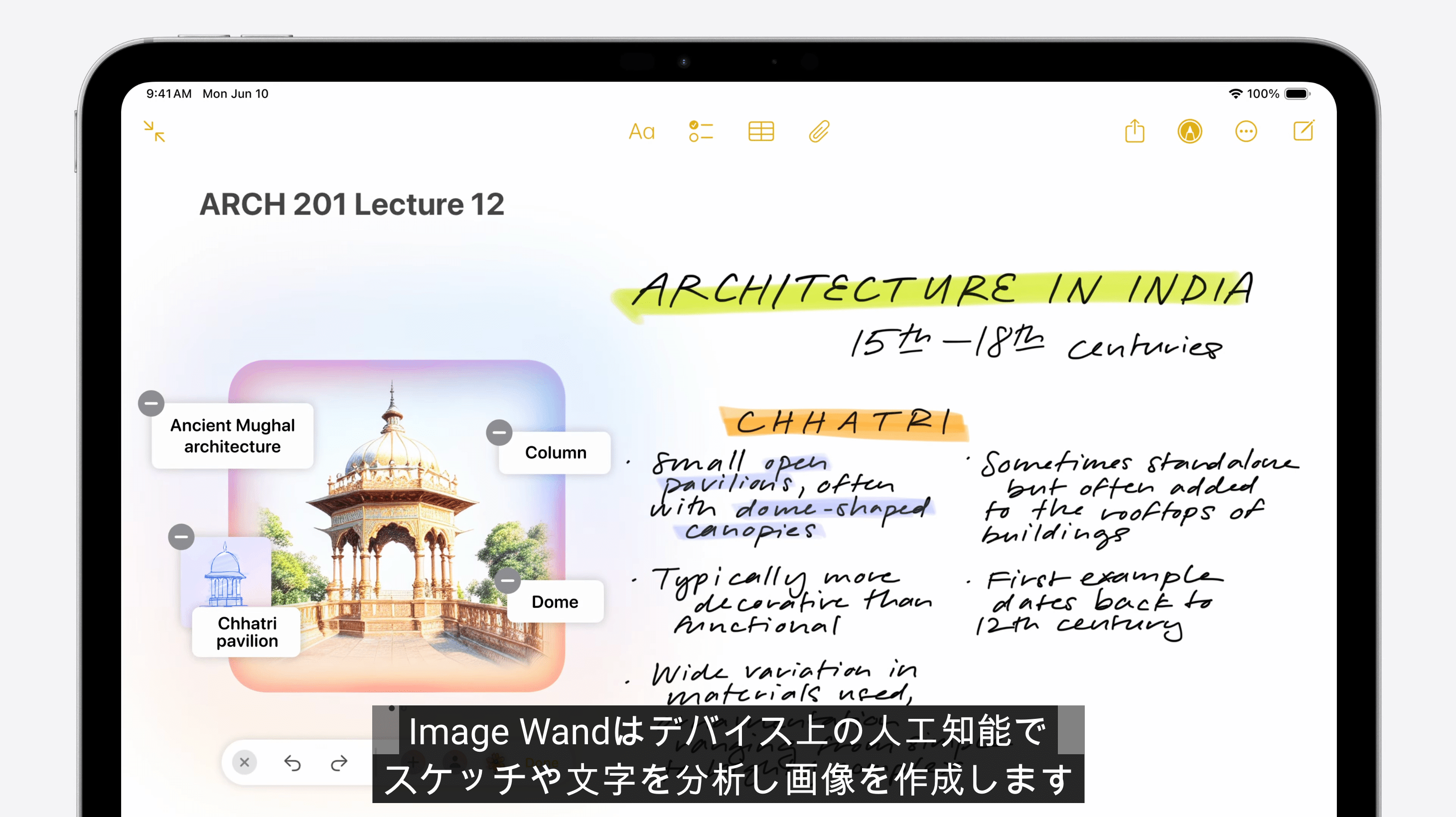 Notesアプリで使える新機能「Image Wand」は、手書きのスケッチを、AIがイラストに変換してくれるツールです。