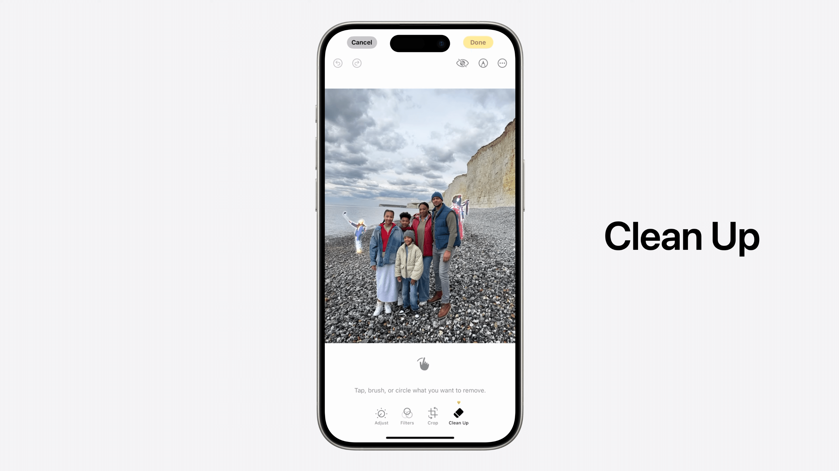 写真の編集機能も、AIによってさらに使いやすくなりました。例えば、「Clean Up」ツールを使えば、背景に写り込んだ不要なオブジェクトをワンタップで消去できます。