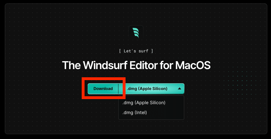 Windsurf Editorのダウンロードページにアクセスします。