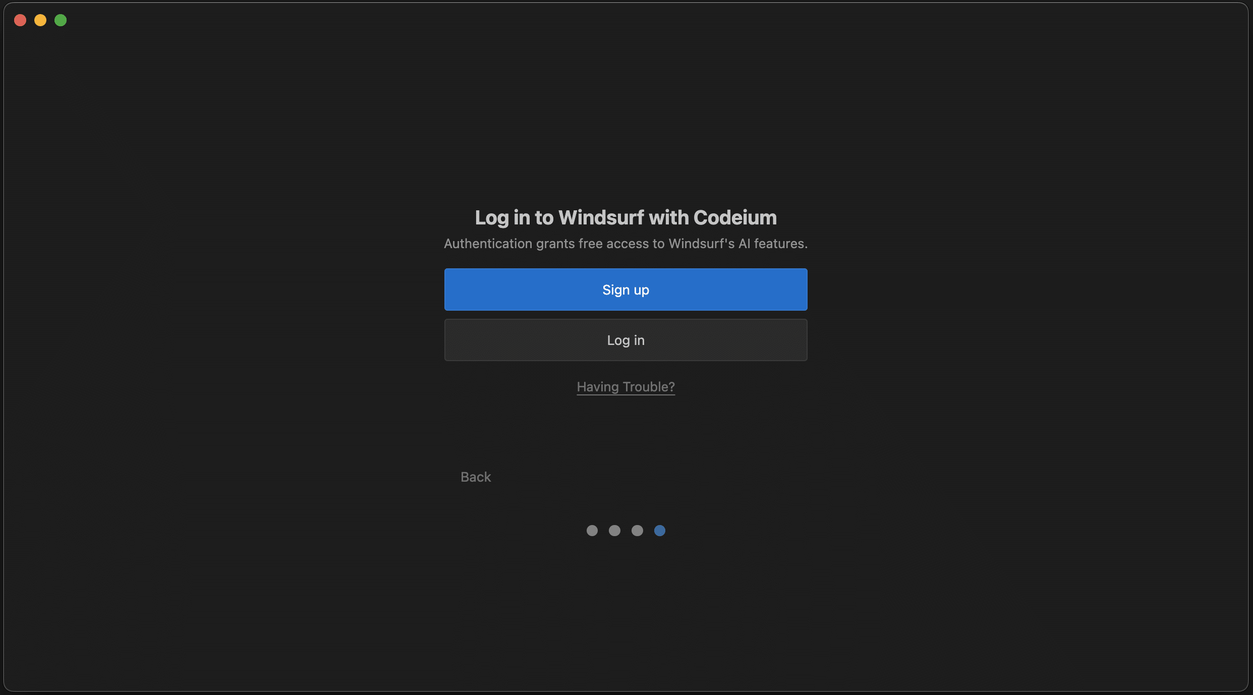 Windsurf Editorを利用するには、Codeiumアカウントが必要です。お持ちでない場合は、「Sign up」からアカウントを新規作成しましょう(無料)。