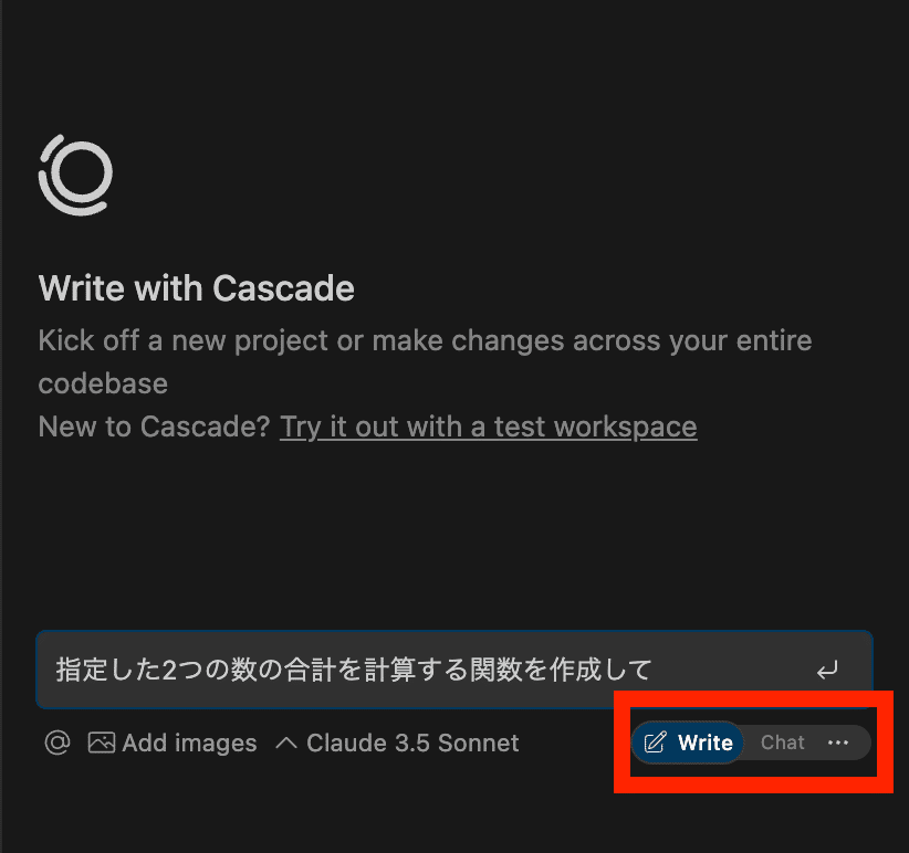 Writeモード: AIにコードの生成や修正を依頼する際に使用します。