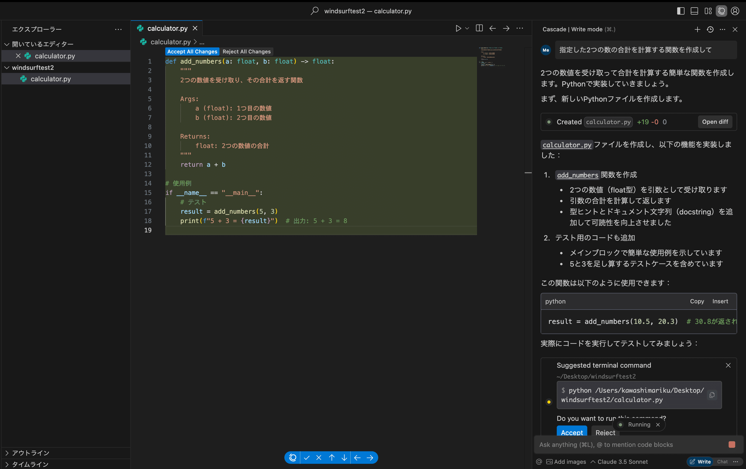 Windsurf Editorの基本的な操作は、VS Codeと共通する部分が多いです。