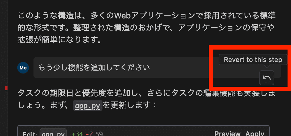 Cascadeで生成・編集したコードは、「チェックポイント」と呼ばれるマイルストーンとして記録されます。
