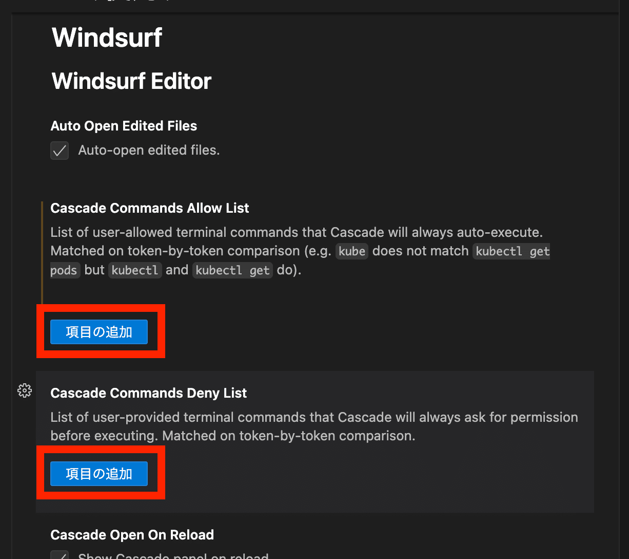 Cascadeでは、毎回手動で承認する必要なく、特定のコマンドの実行を自動化する機能もついてます。