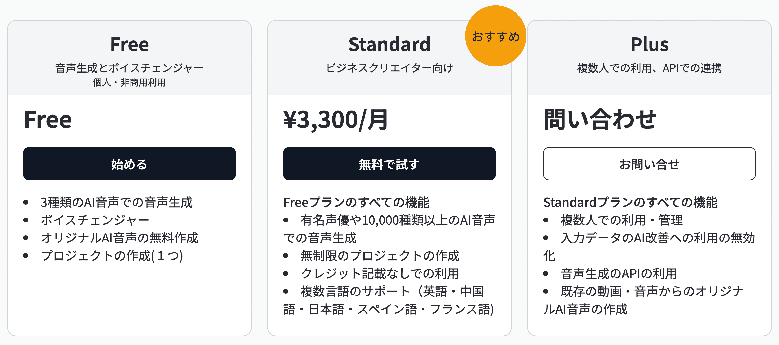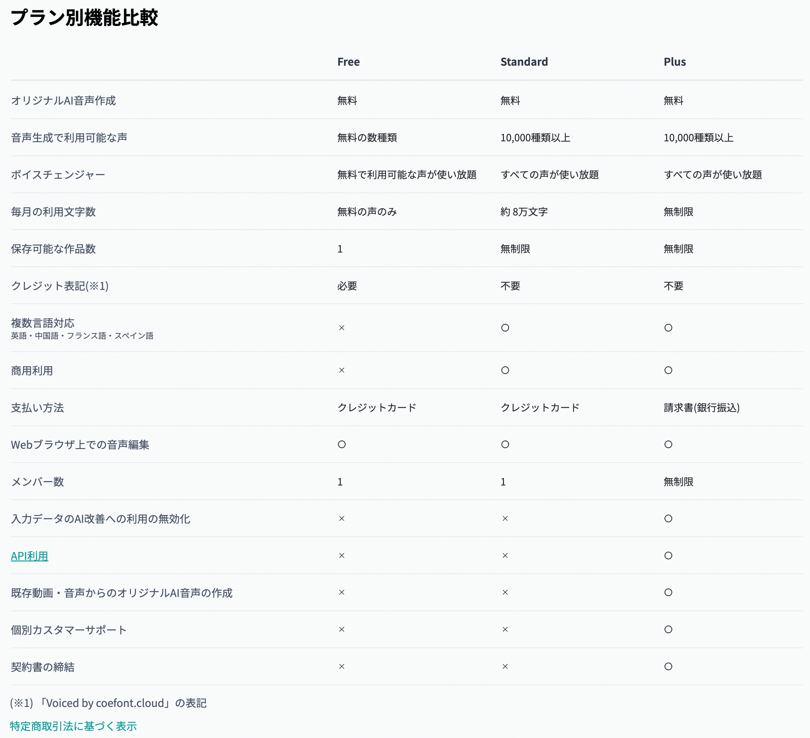 CoeFontの料金プランは、以下の3種類が用意されています: