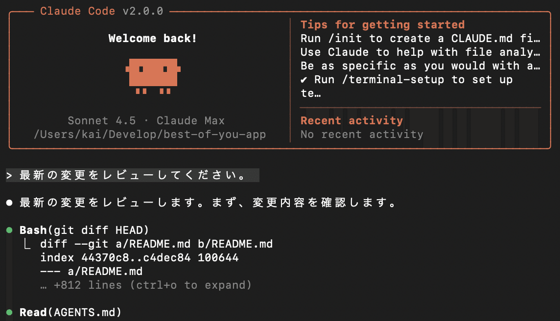 ターミナルUIの改善: 動作状況の表示が分かりやすくなったほか、Ctrl+rで過去のプロンプト履歴を検索できるように。