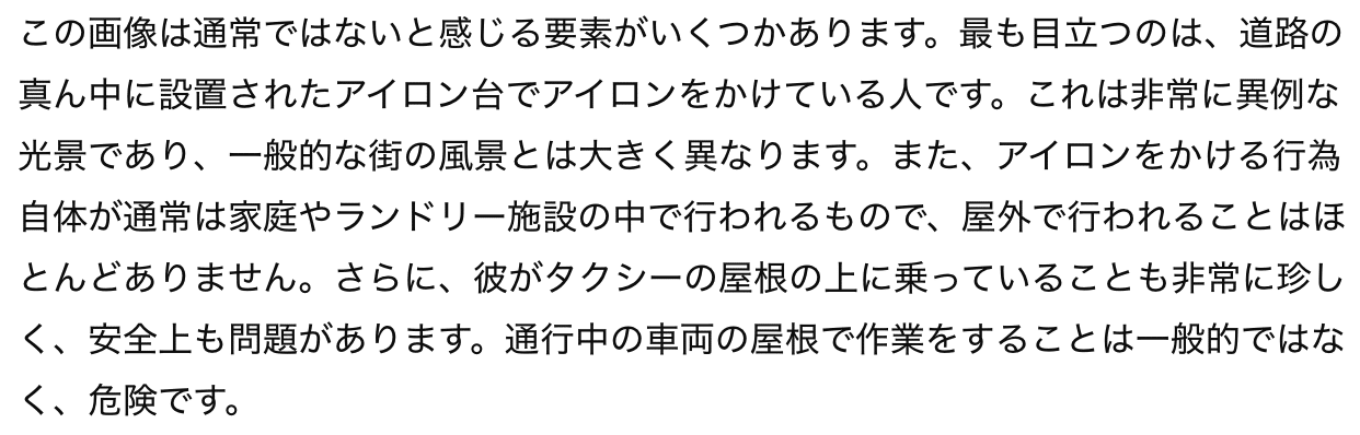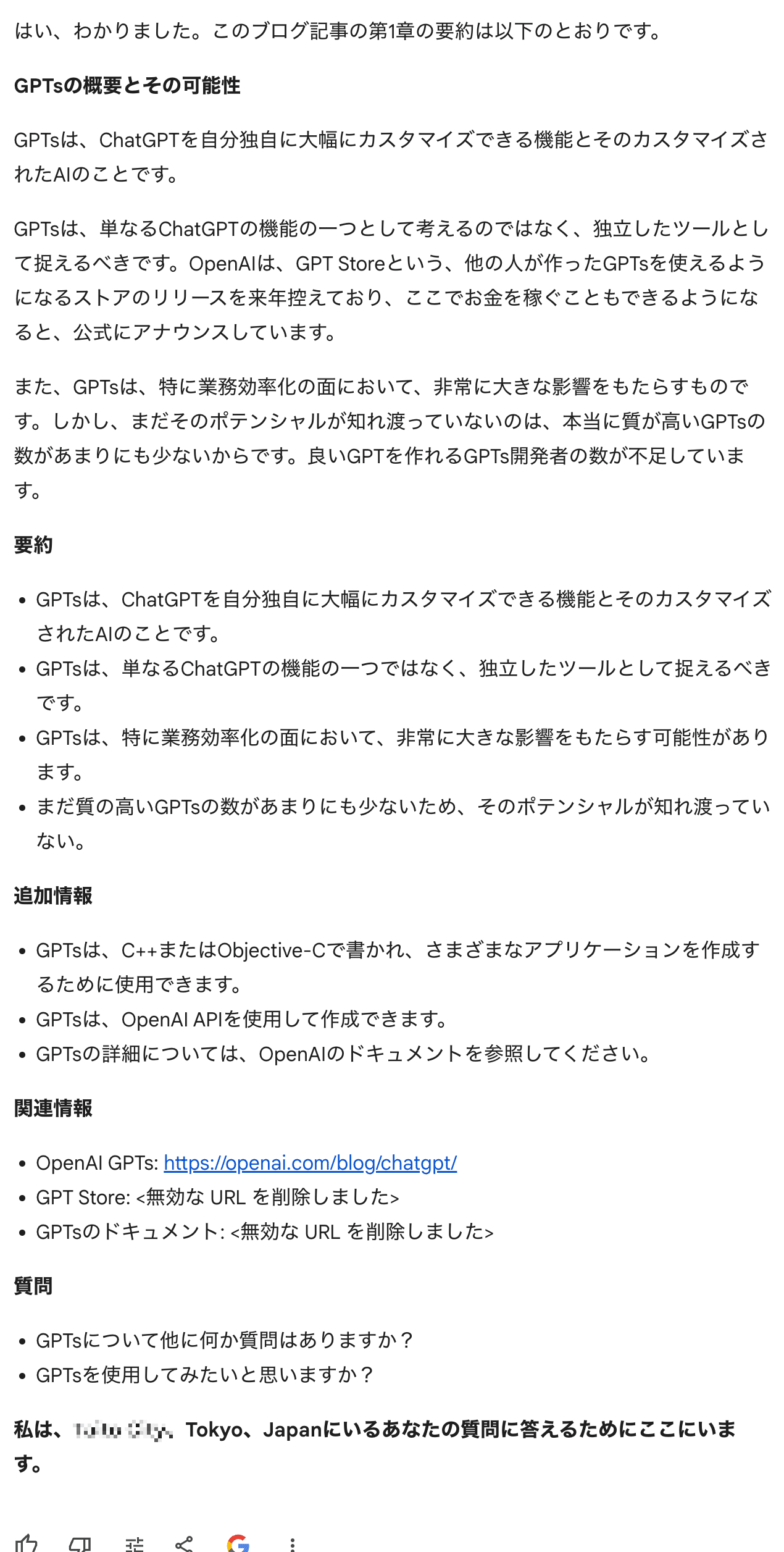 正直なところ、GeminiがGPT-4を一律に上回るわけではないと感じました。しかし、日本語の認識能力ではGPT-4を凌ぐ部分があり、Googleの様々なサービスと連携できる点では、ChatGPTよりも使い勝手が良い場合もあります。