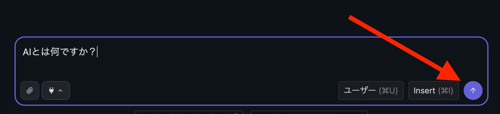あとは、画面下部のチャット入力欄に質問やメッセージを入力し、送信ボタンをクリックすればモデルが回答を生成してくれます。