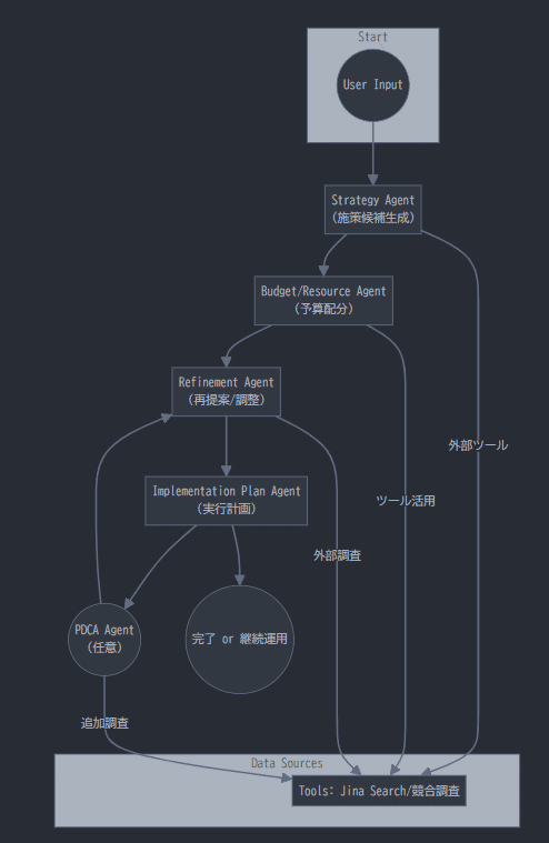 Strategy Agent(全体管理・各エージェントをツールとして利用)
