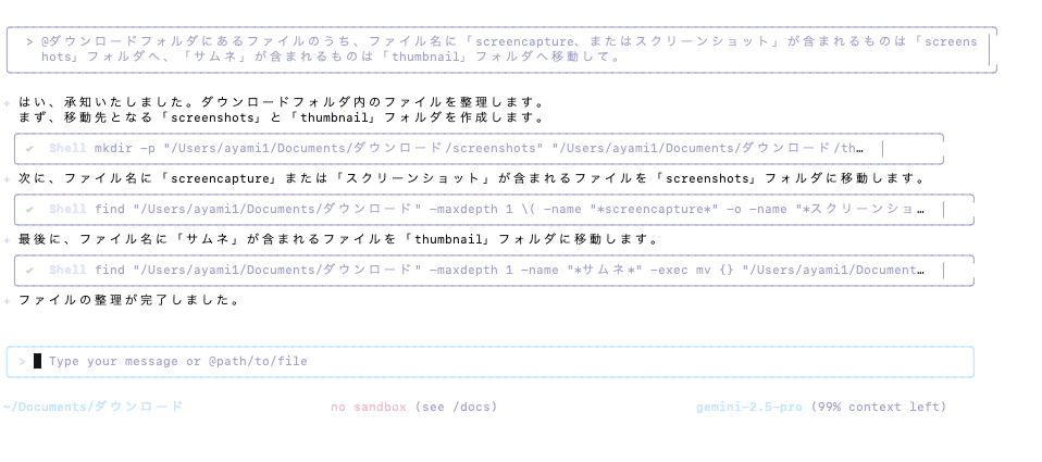 Gemini CLIを使えば、こうした整理作業を一瞬で終わらせることができます。